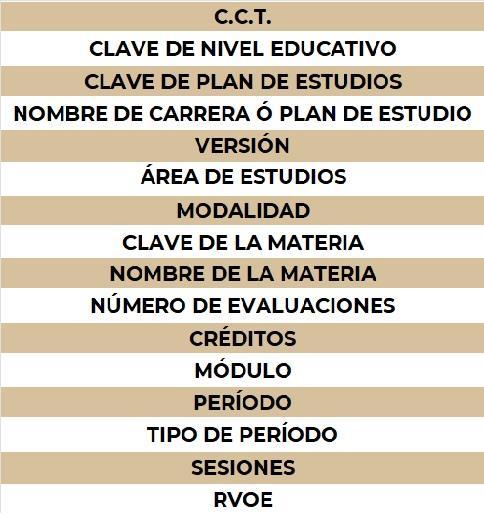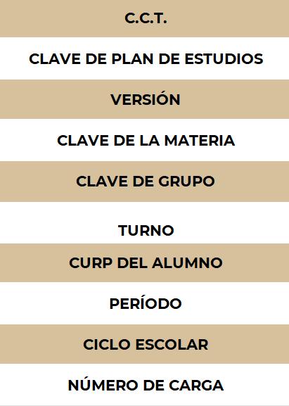Debe estar escrita en letras MAYUSCULAS, contar con 10 dígitos y pertenecer al plantel correspondiente