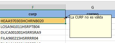 3. Podrá observar en la parte derecha del Excel una leyenda que describe el tipo de error.
