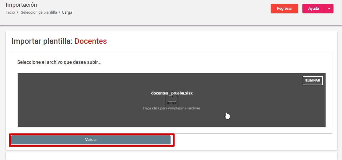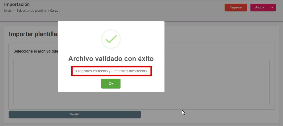 Una vez llenada la plantilla de trabajo, se procede a la PRIMERA VALIDACIÓN