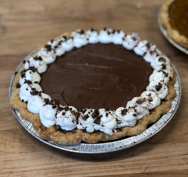 10 inch & 12 inch pies available in: Pecan, Pumpkin, Caramel Apple, Chocolate Mousse, Vegan Apple, and Vegan Cherry Crunch!
