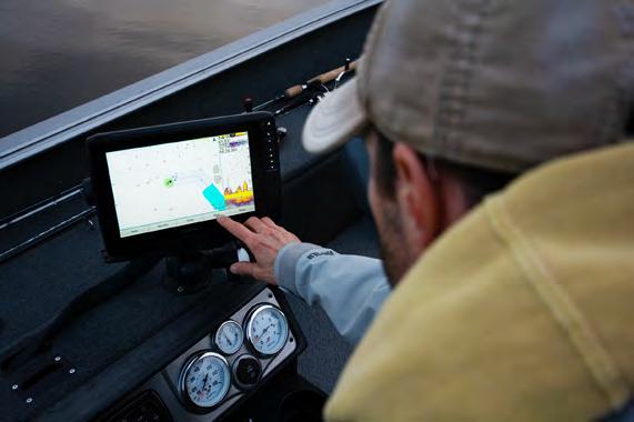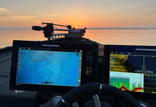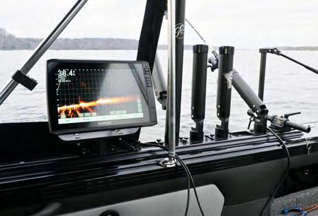 I power my electronics with an Amped 12-volt, 160-amp-hour battery, while my Minn Kota runs on a separate 36-volt battery. I also keep a Fish Armor Shuttle on the passenger side of the boat so guest anglers can use a Humminbird Xplore with MEGA Live 2 mounted on a Fish Armor Pro Pole.