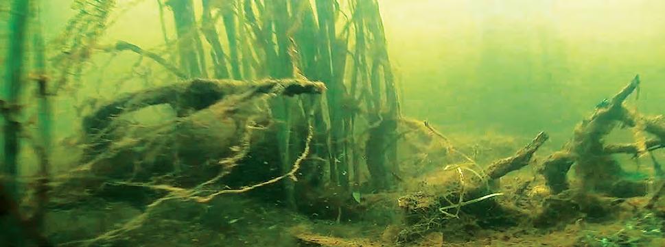 Emergent weeds such as cabbage, coontail, and milfoil create edges that provide concealment from predators like bass, northern pike and walleye. Last year’s dead wild rice stalks are slightly woody and do not give off toxins. They create a forest of thin stems and leaves, like an abandoned hayfield, holding plenty of bite-sized insects.