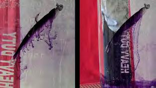 Here’s another snippet and photo from this Joe Albanese Wired2Fish write-up: “ ...they added some purple pigment to the MaxScent Slime coating to illustrate how it was dispersed throughout the water. For about 20 minutes or so, there was a continual slick of purple dye and scent oozing off the baits.”