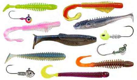 Jigs and plastics dominate here – usually brighter-colour ringworms (Berkley PowerBait Curly Bones and Bonefish, AuthentX Ringworm and Moxi, etc) and paddletails (Rapala CrushCity The Mayor, Northland Eye-Candy Paddle Shad, Berkley PowerBait Power Swimmers, etc) work best... but don’t be afraid to try a dark profile.