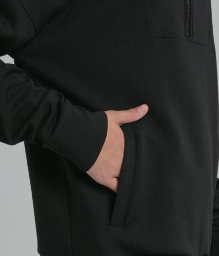 Made from the soft, smooth to the touch knit, this half zip is perfect for your team wardrobe. The panelled half-zip has a funnel collar, can be worn fully zipped or half for a fold over look. Dropped shoulder seam and self-fabric cuff at sleeve and bodice hem. Hidden kangaroo front pocket. Relax Women’s Fit.