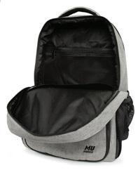 Laptop backpack with padded interior compartment, multi-sized zipper compartments and front slip pocket. Dual side mesh pockets, padded back panel, and adjustable straps. Polyester, Nylon.