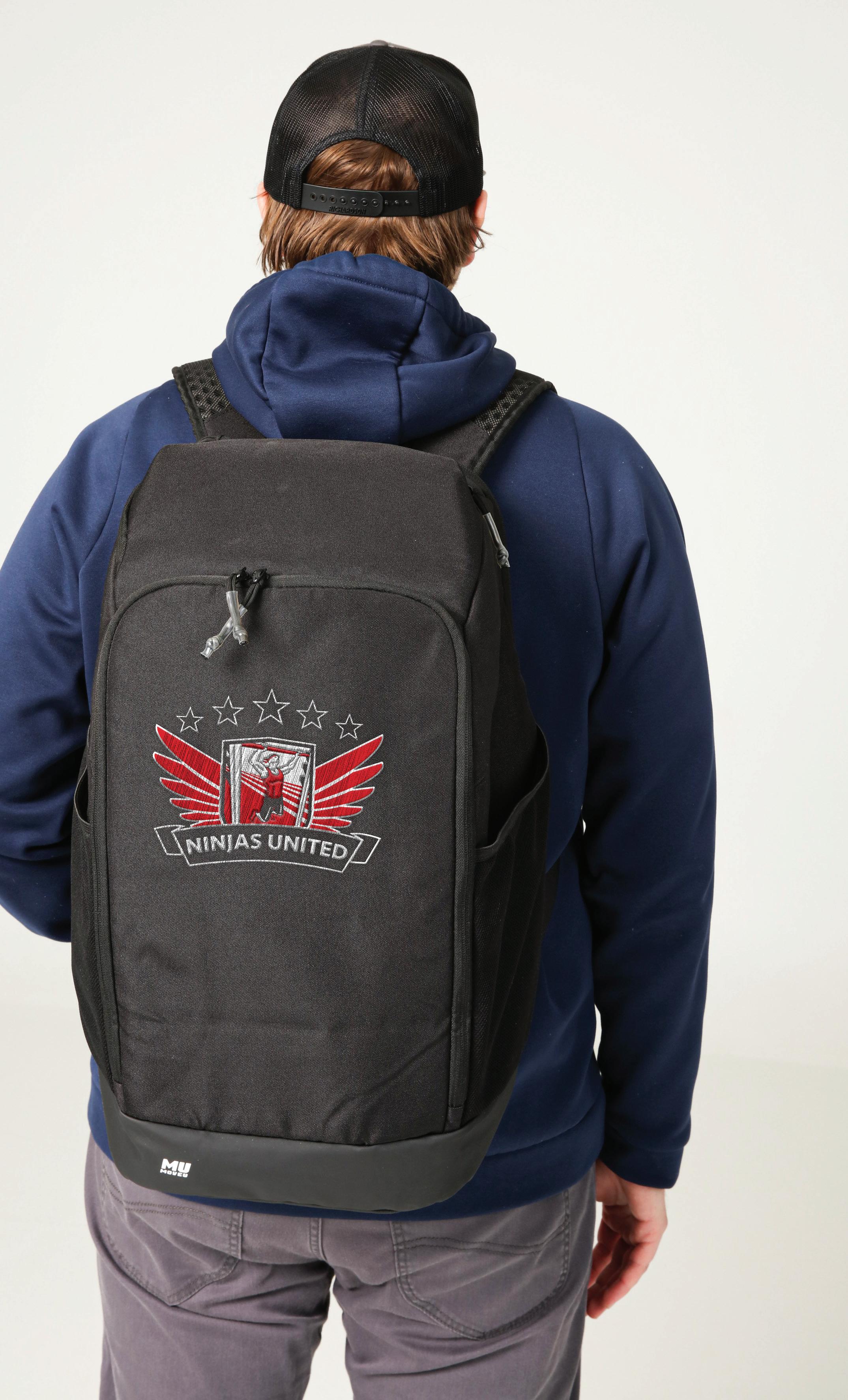 Introducing our versatile training backpack. This backpack features a spacious main compartment that can easily fit two basketballs and more. Stay organized with the large mesh zippered pocket and additional mesh pocket inside. Keep your laptop safe in the padded, soft-lined compartment with an extra mesh pocket. Need quick access to essentials? Our zippered soft-lined pocket has you covered.