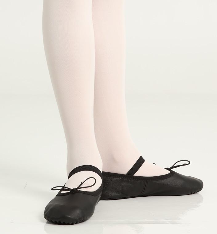 Dance Basix. Full Sole Ballet shoe features a suede sole and 100% leather upper. The elastic strap is pre attached and includes an adjustable drawstring to adjust the shoe to hug the foot.
