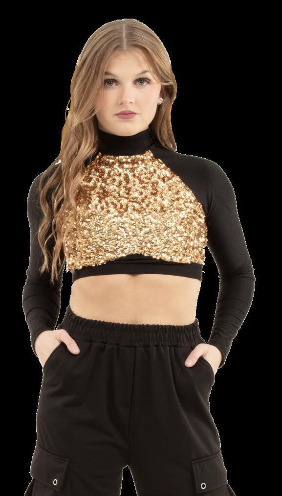Alexandra. Sequin mock neck crop top is fully lined and will surely add that extra sparkle. Nylon, Spandex.