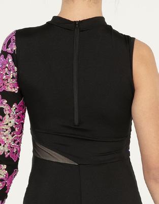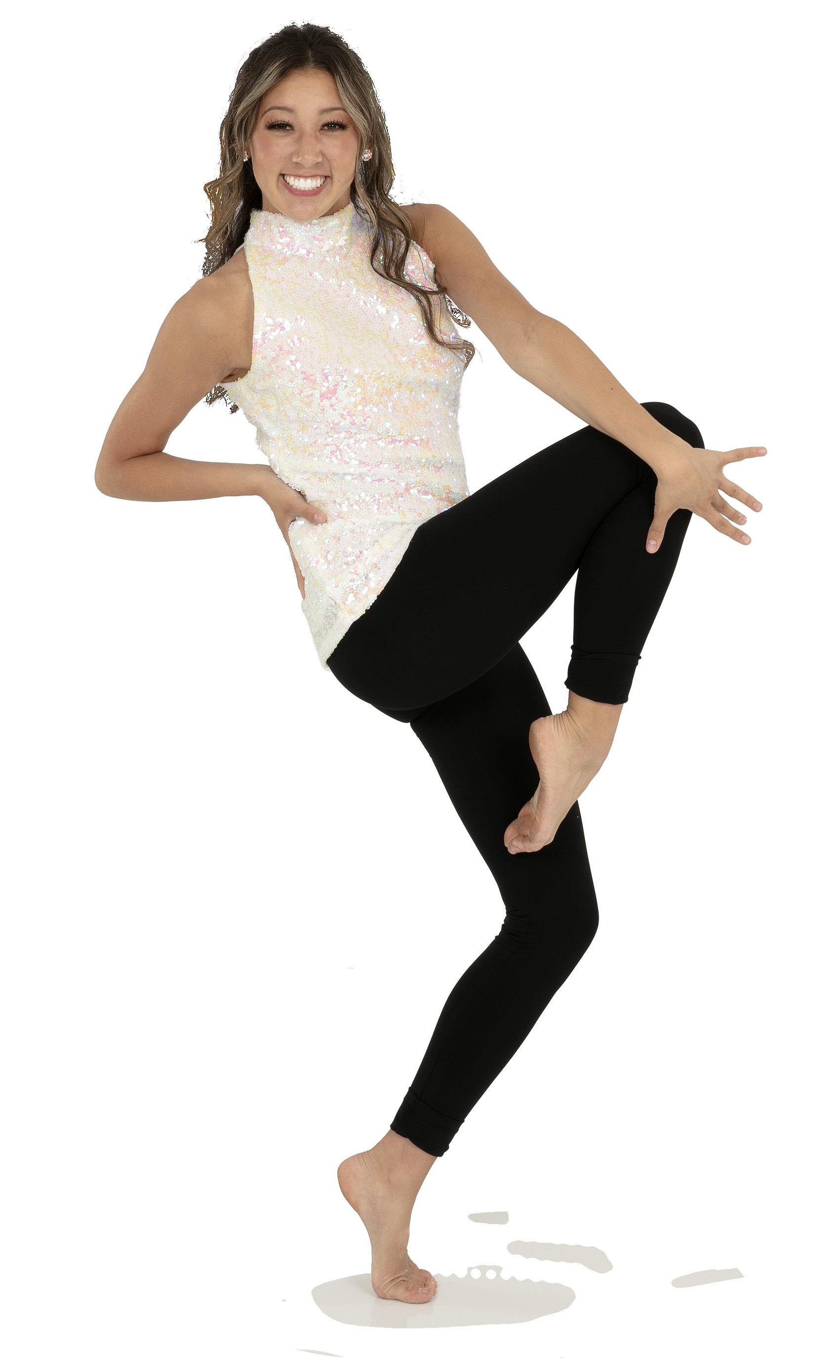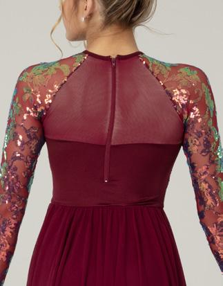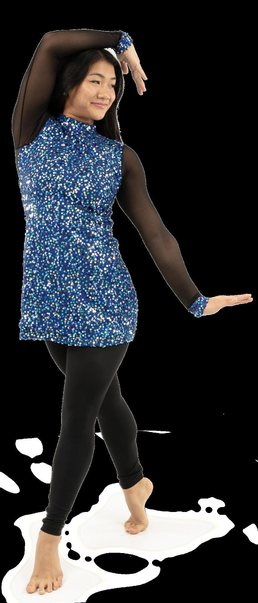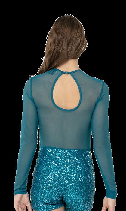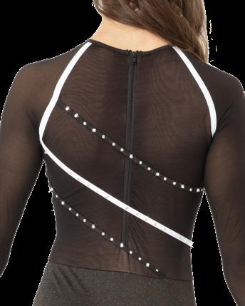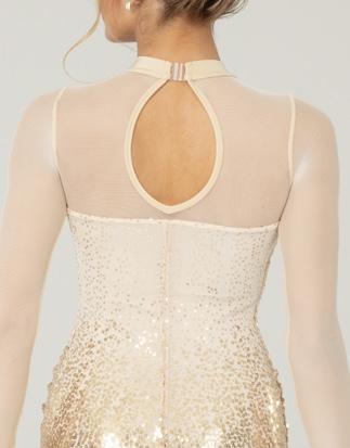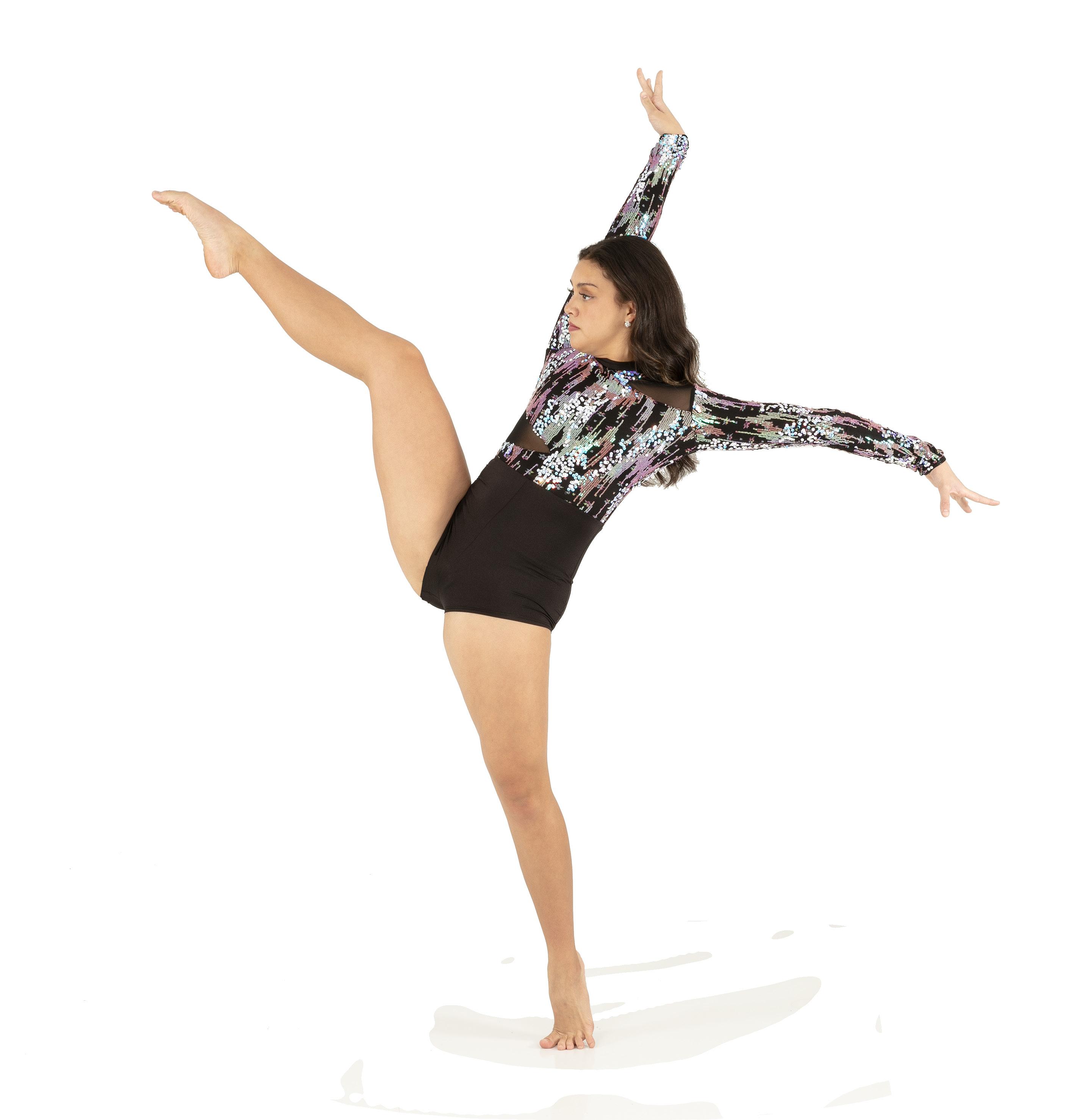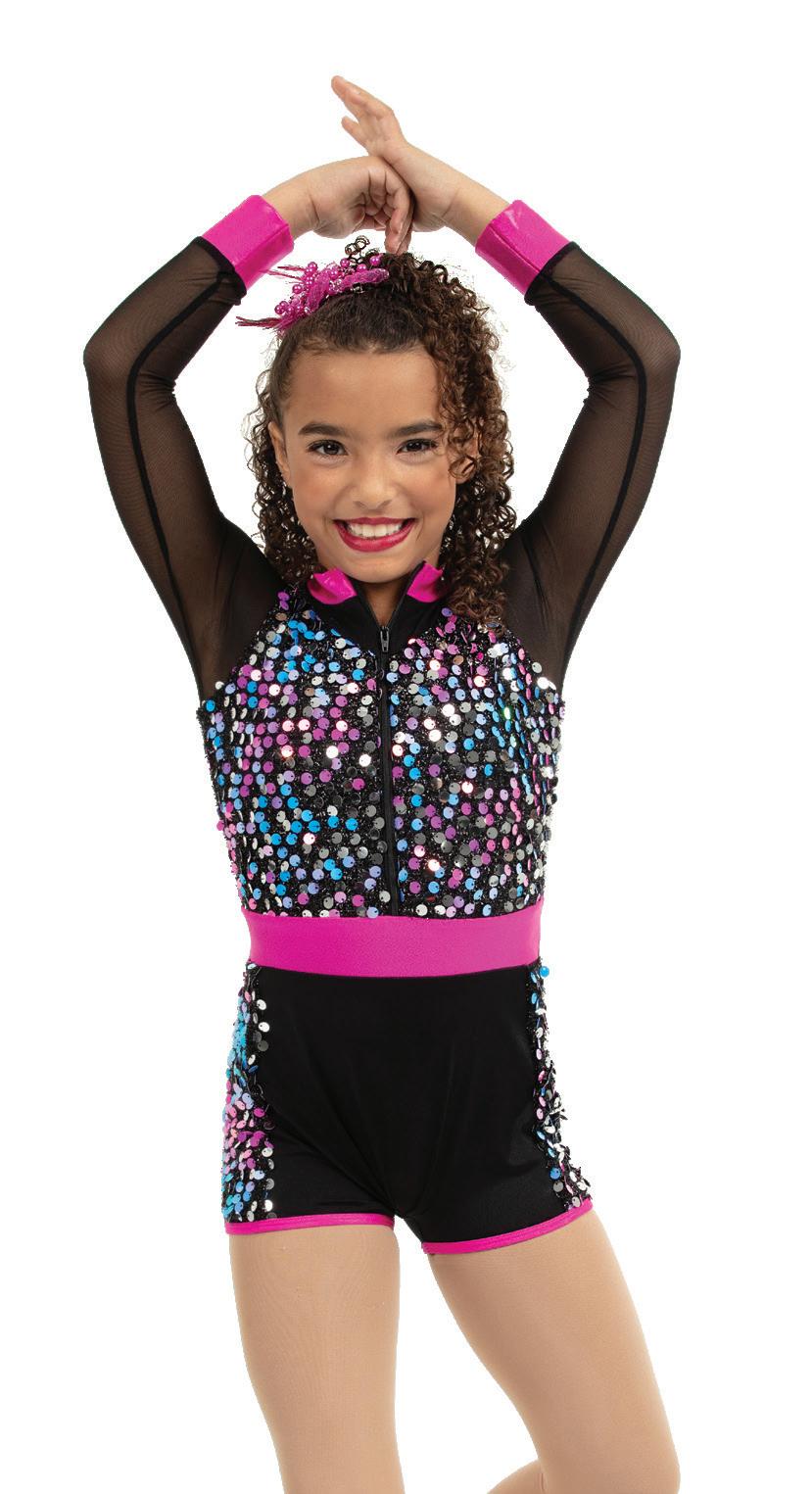 • Long sleeve sequin tunic with a black tricot back, black power mesh sleeves, with sequin cuffs.