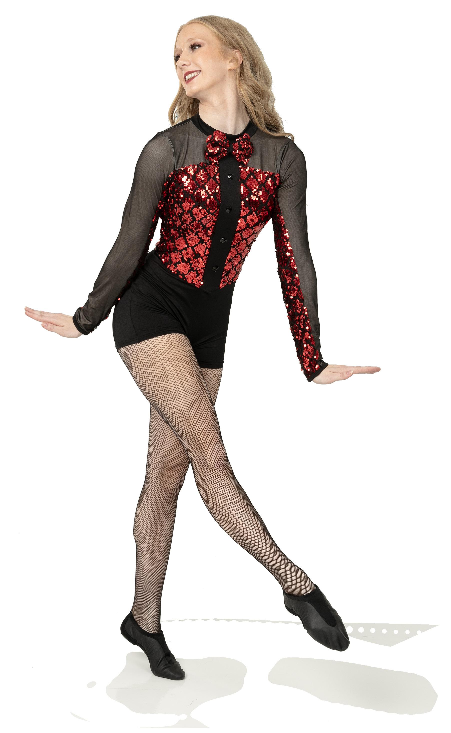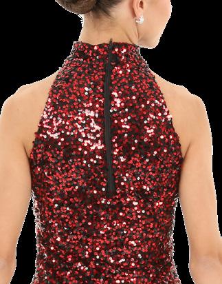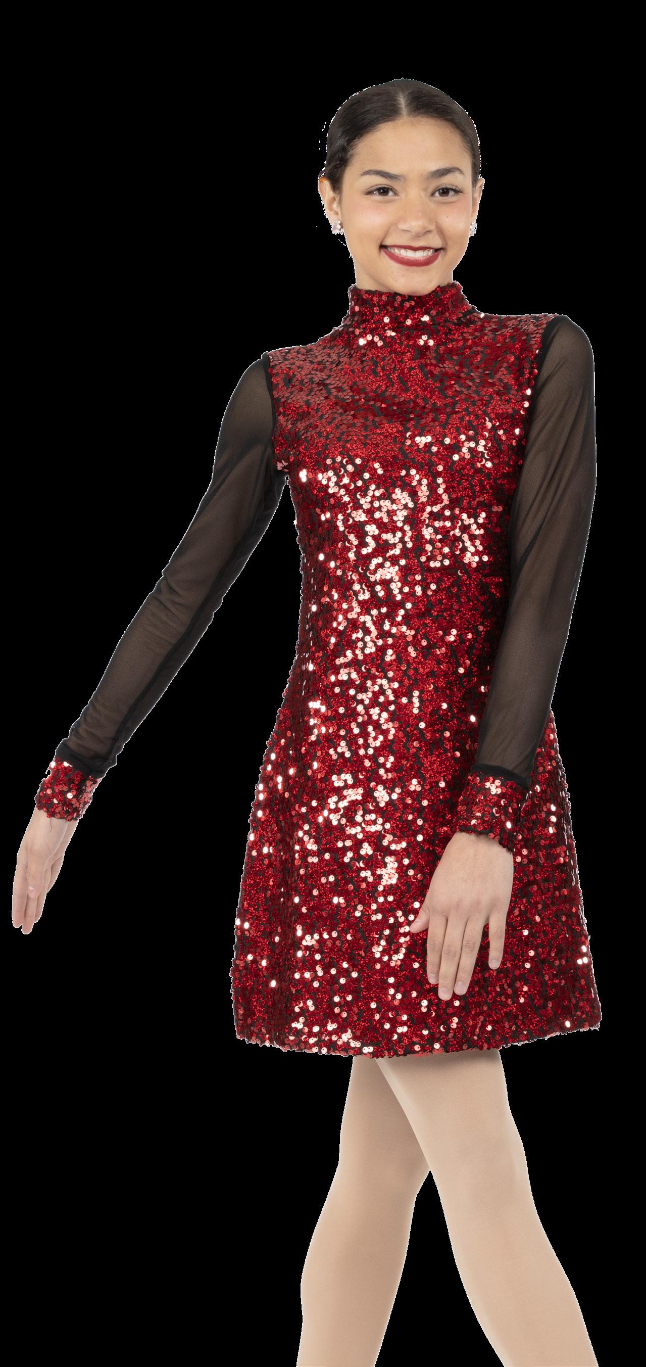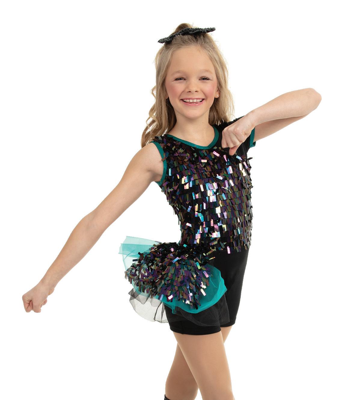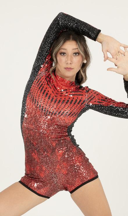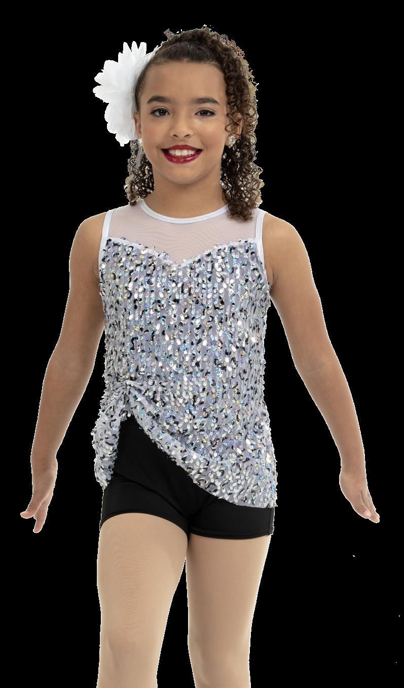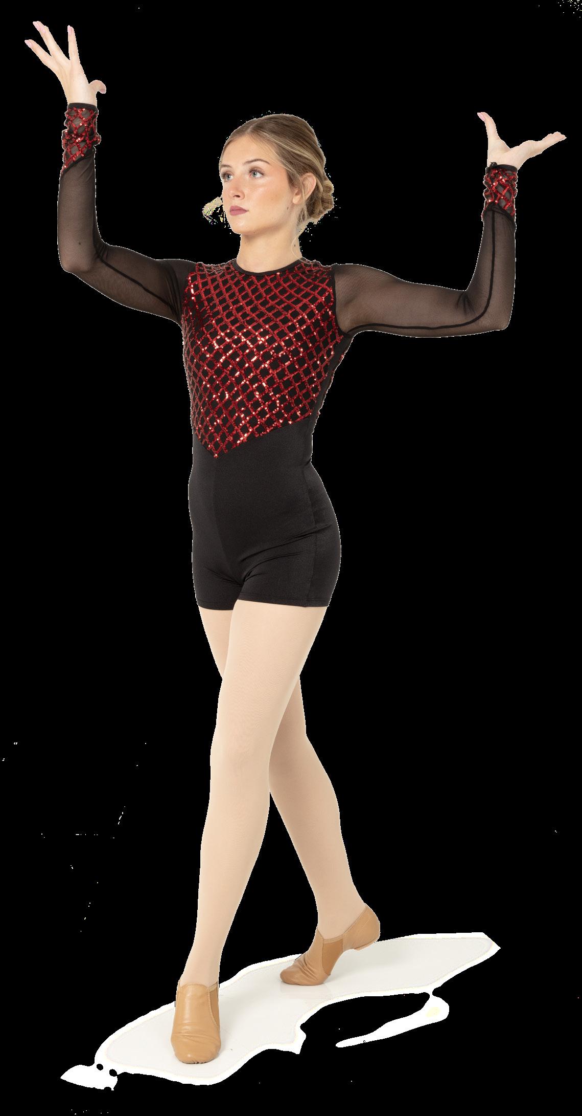 • Long sleeve sequin tunic with a black tricot back, black power mesh sleeves, with sequin cuffs.