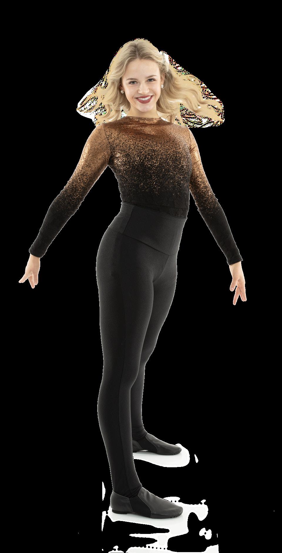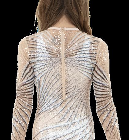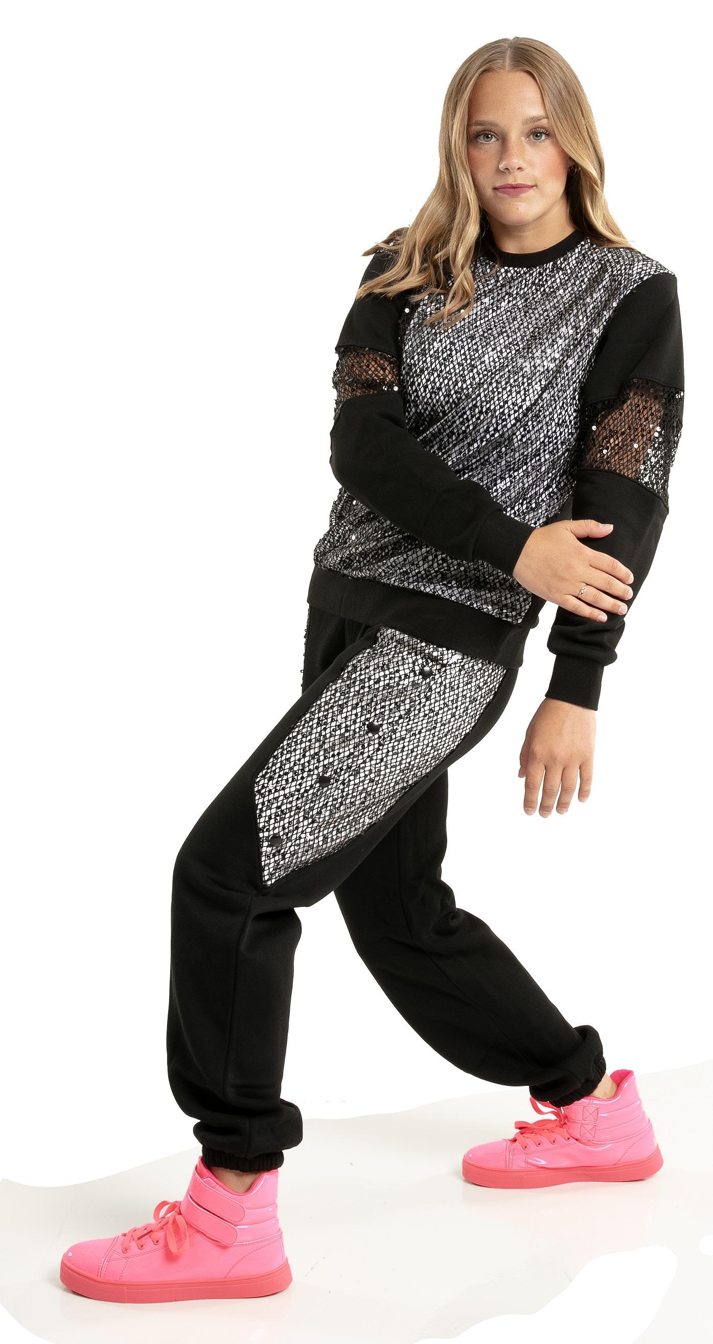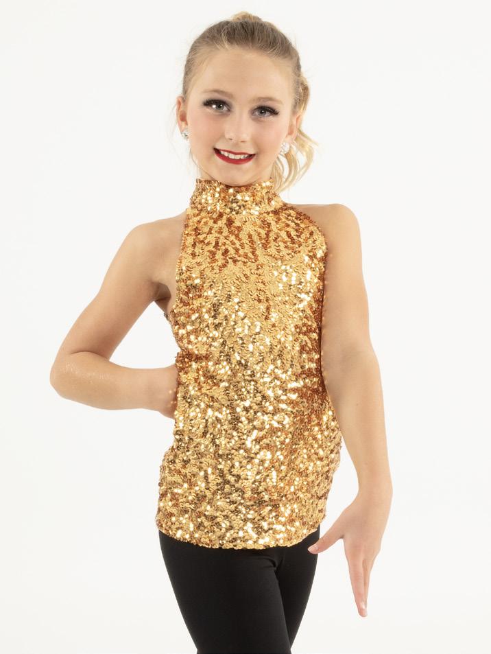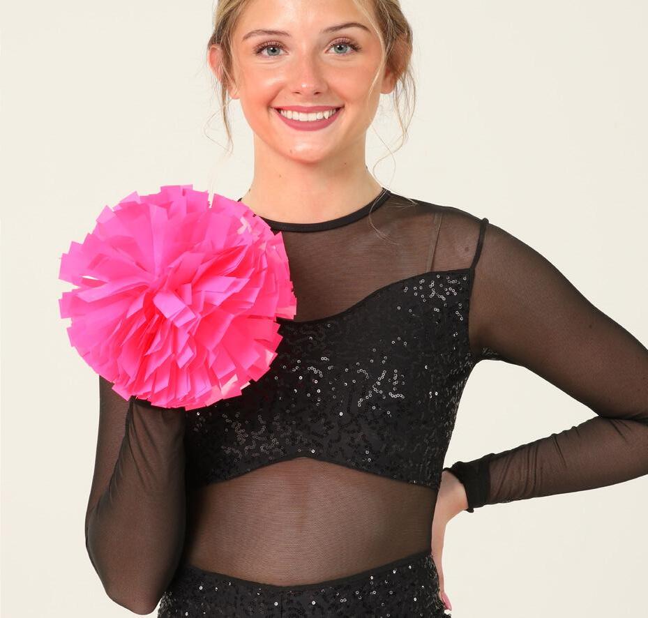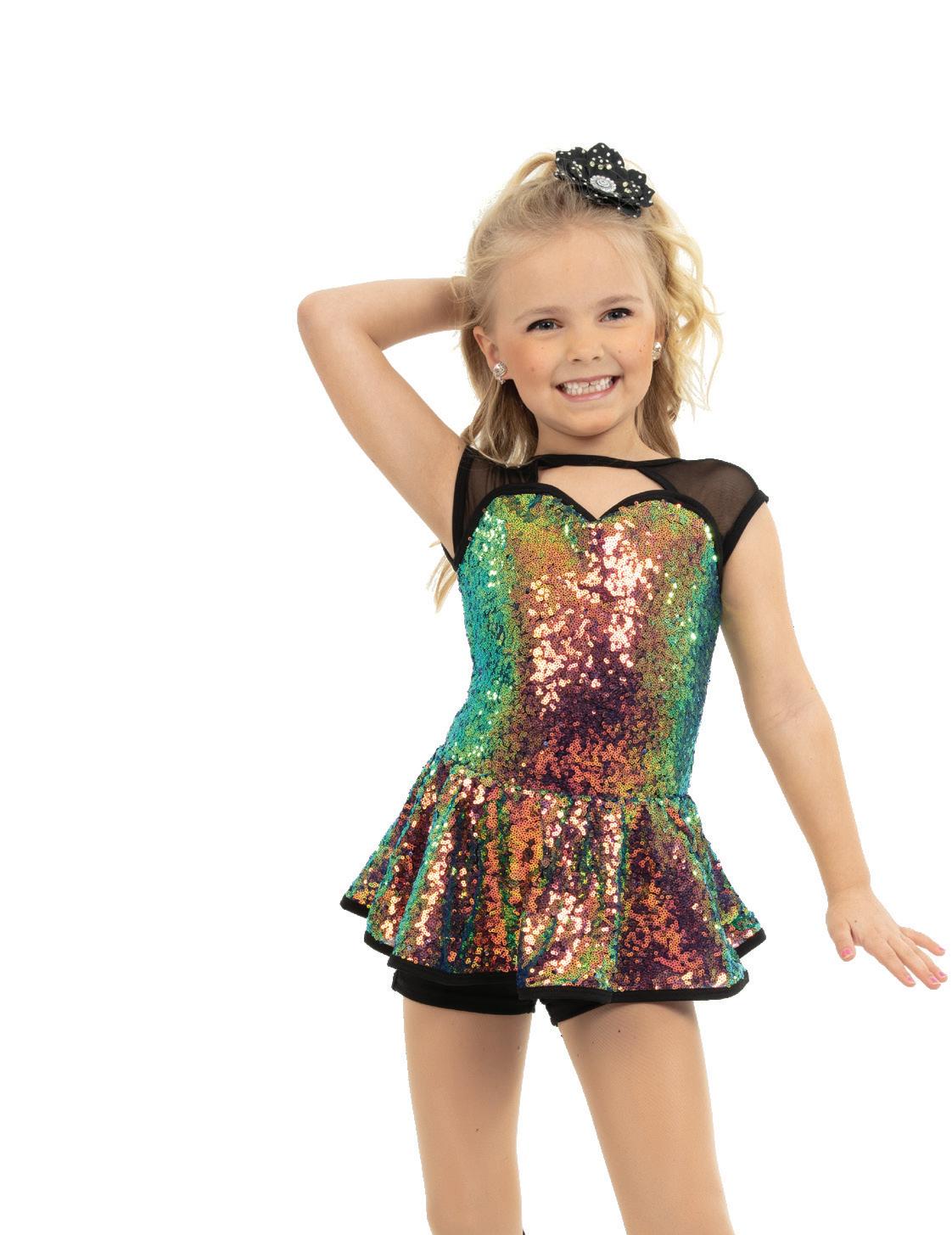 • Long sleeve sequin tunic with a black tricot back, black power mesh sleeves, with sequin cuffs.
