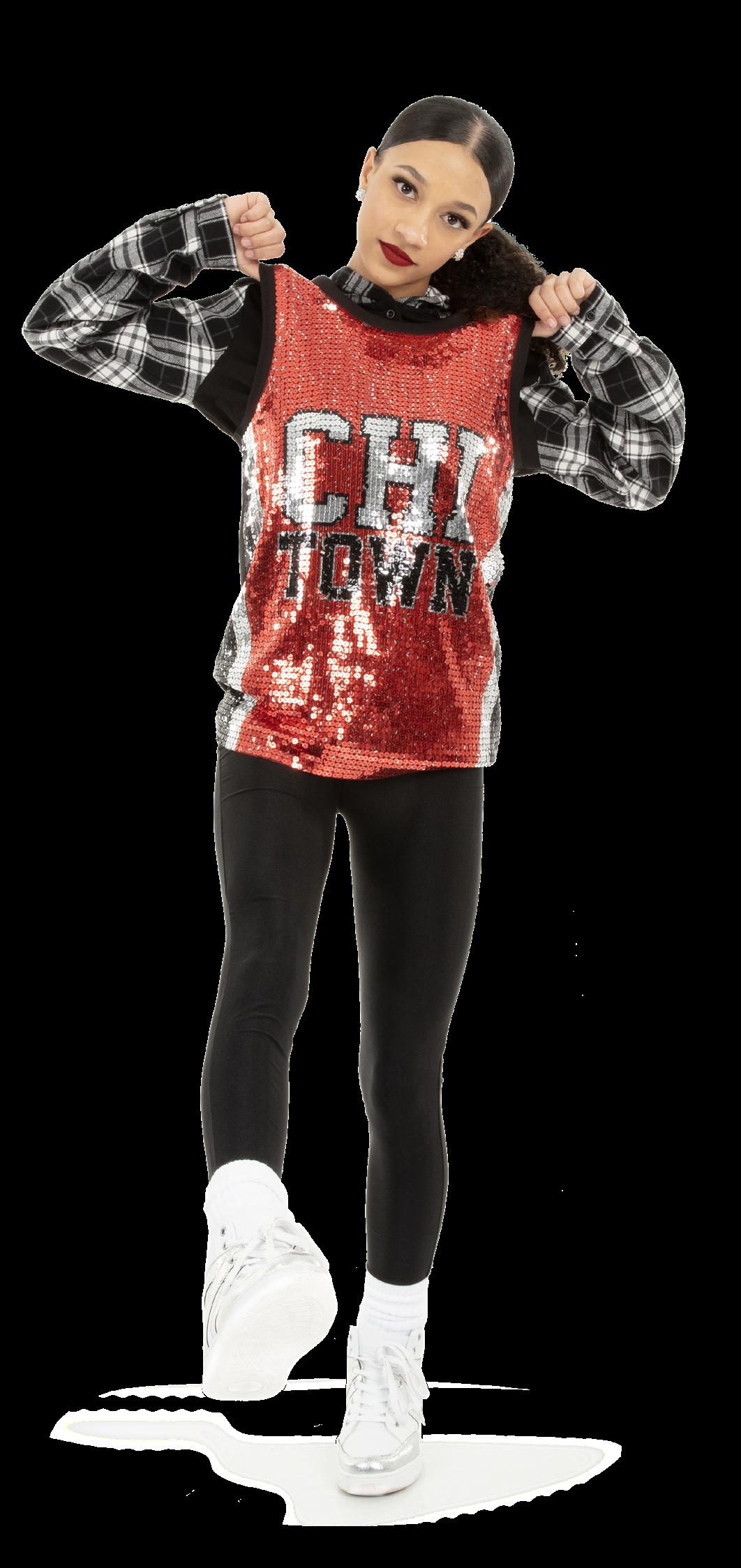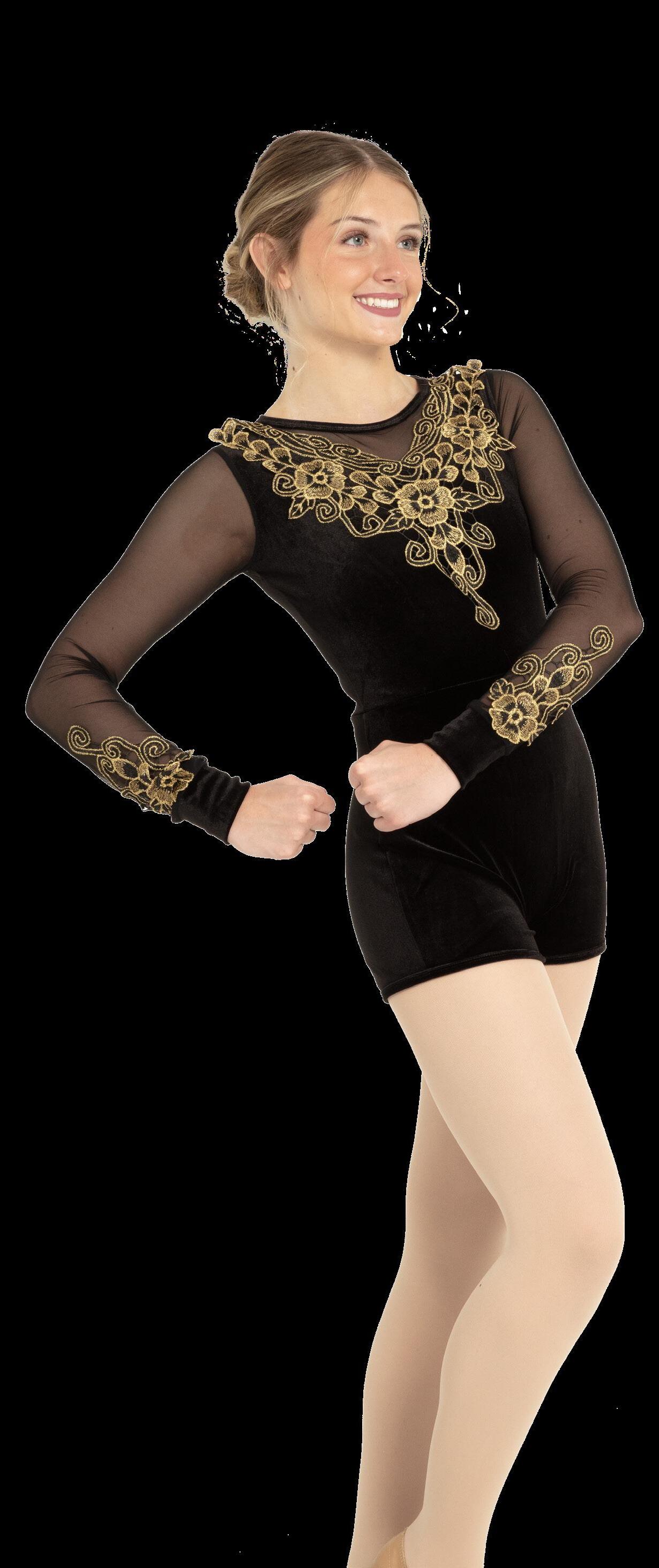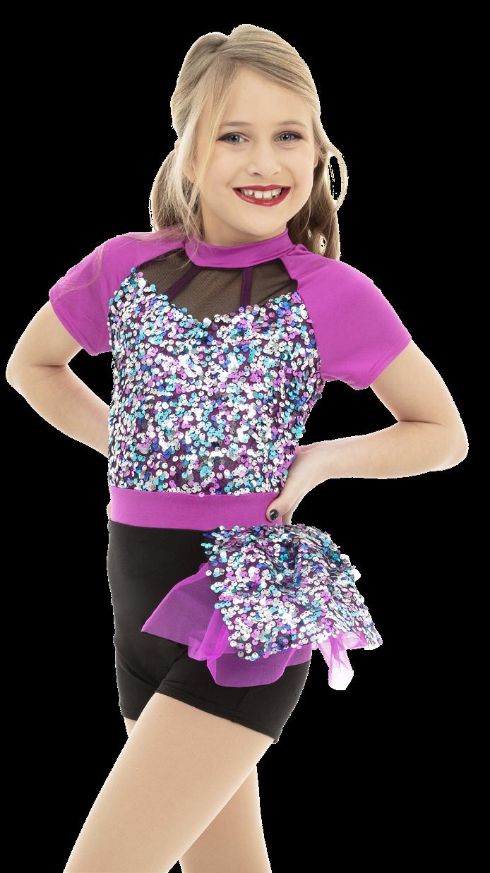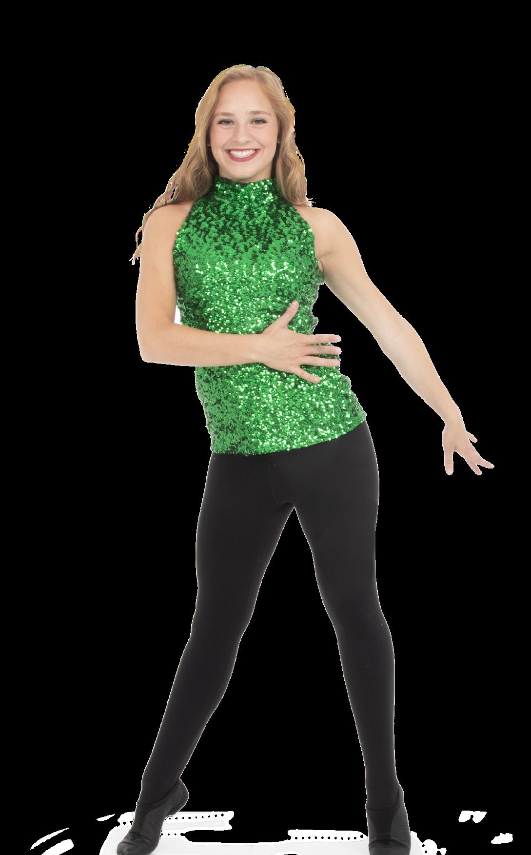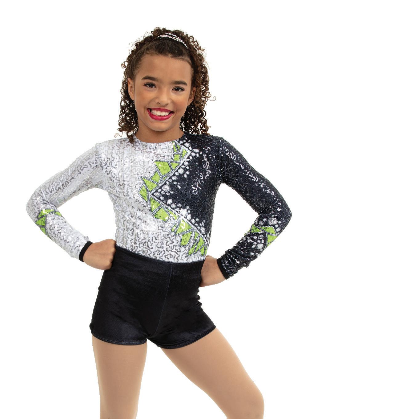 • Long sleeve sequin tunic with a black tricot back, black power mesh sleeves, with sequin cuffs.