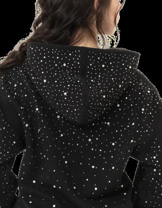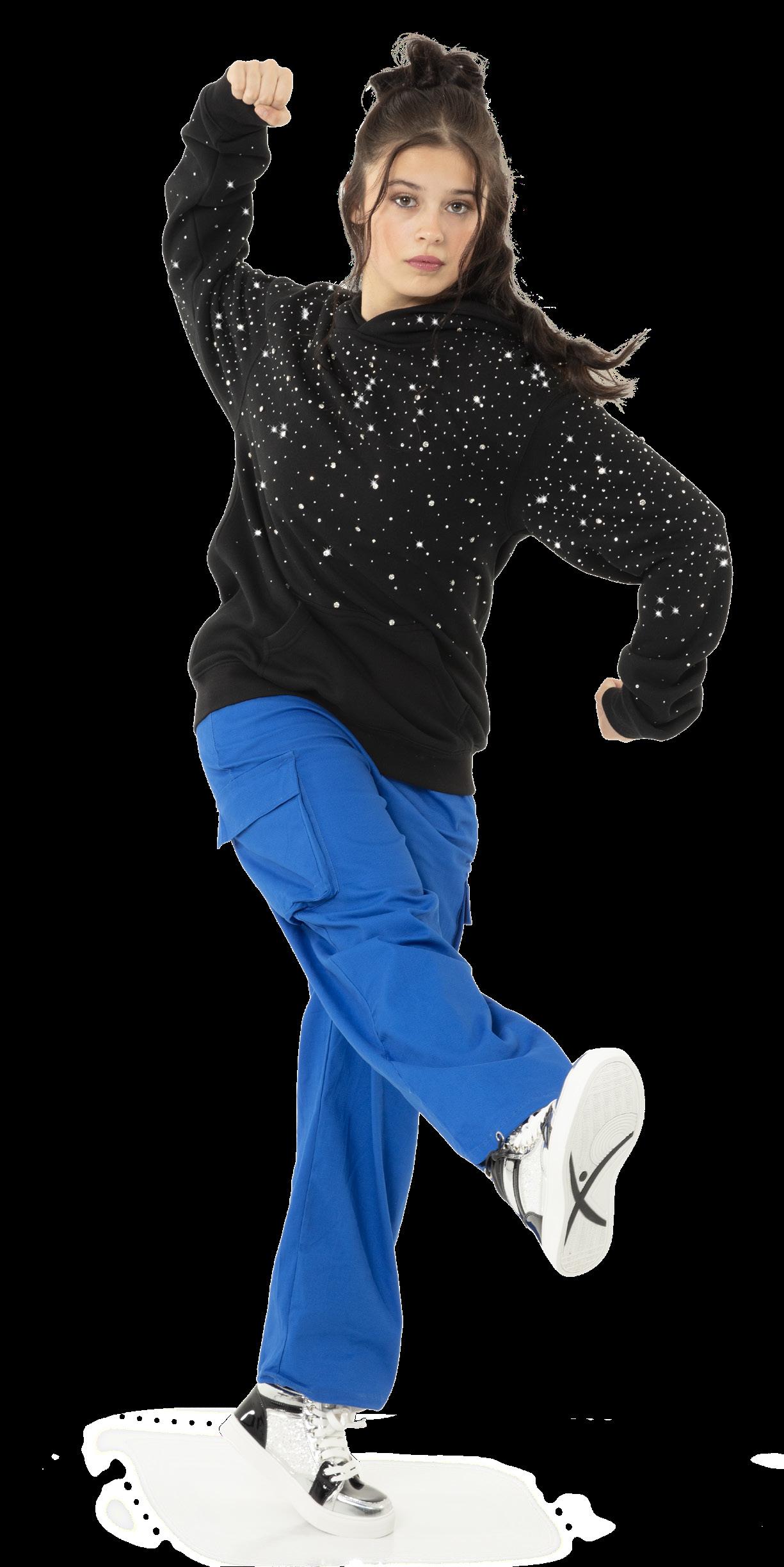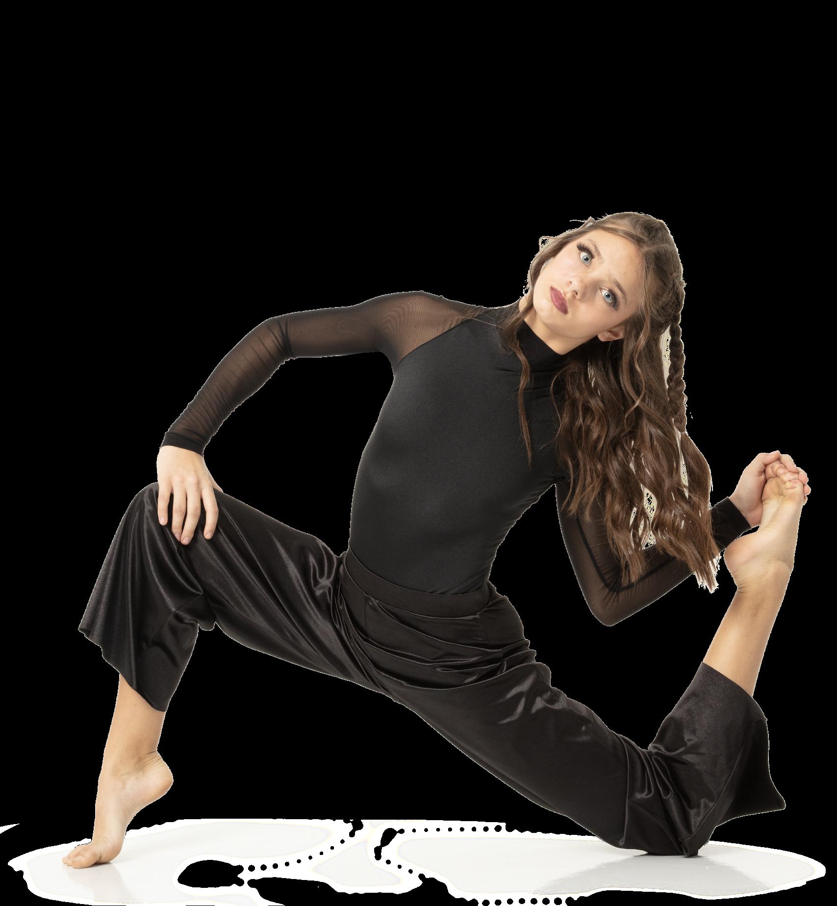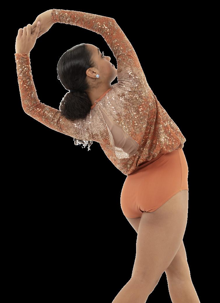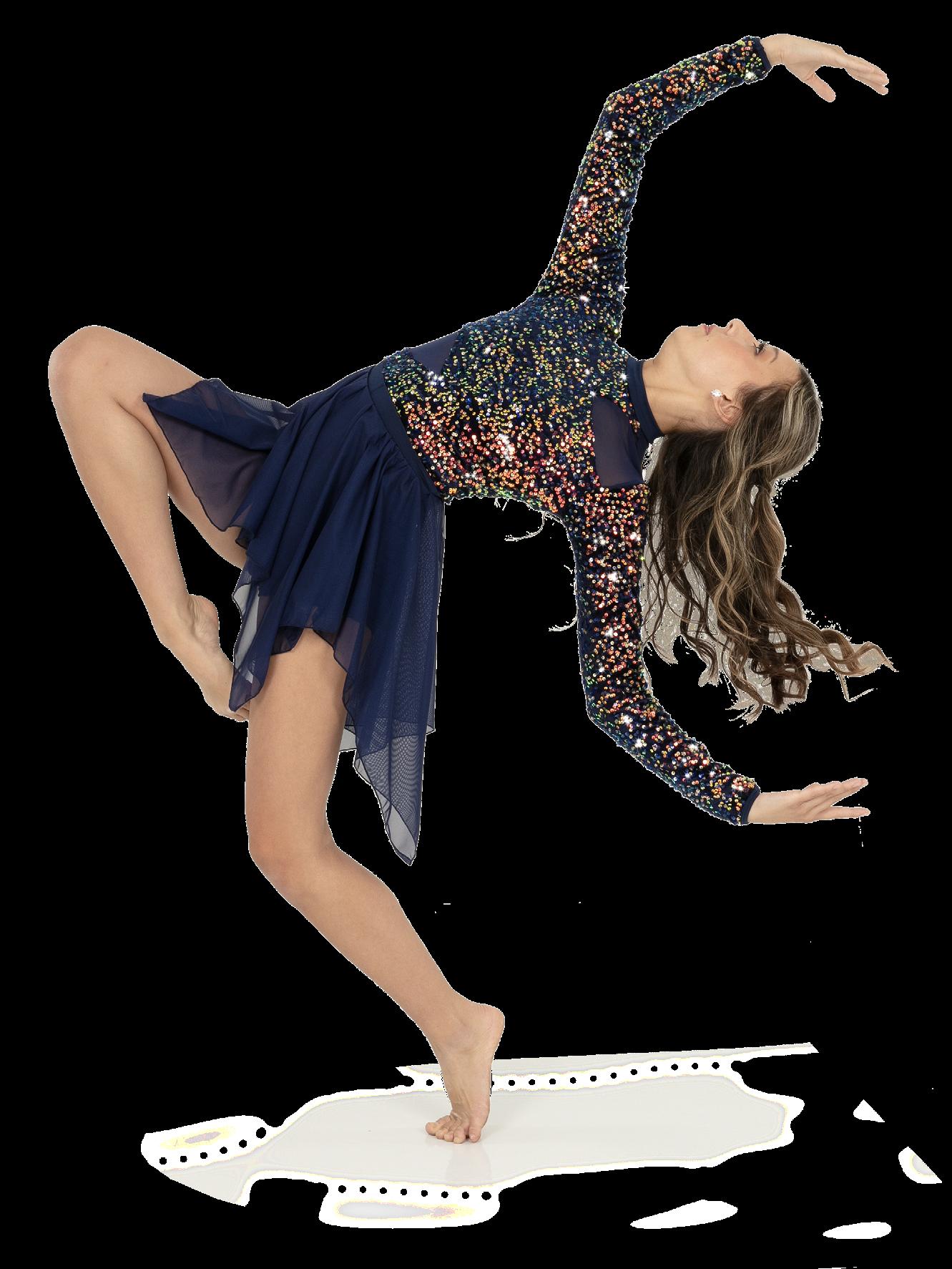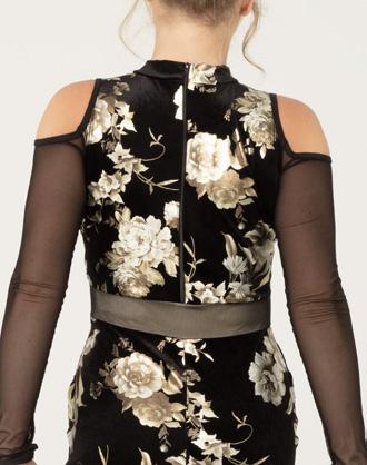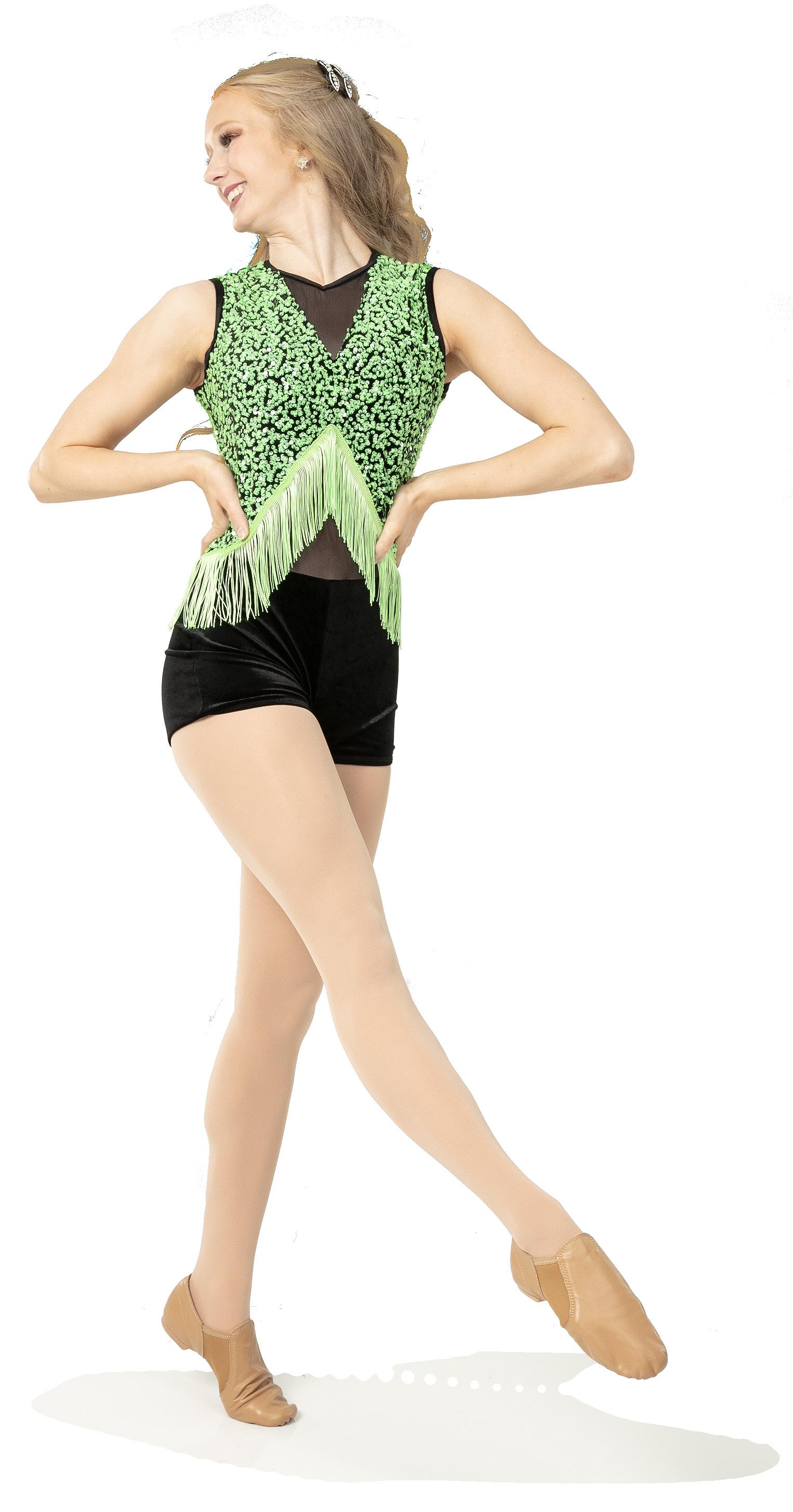 • Long sleeve sequin tunic with a black tricot back, black power mesh sleeves, with sequin cuffs.