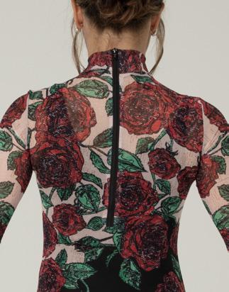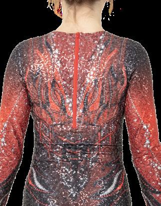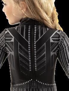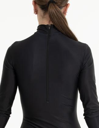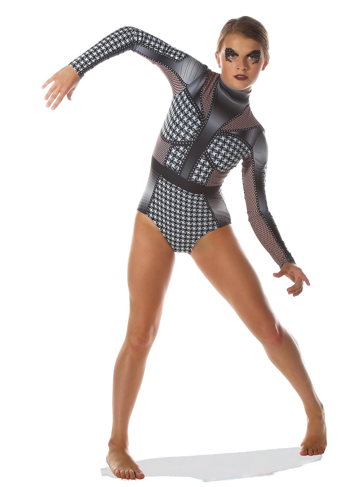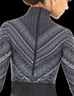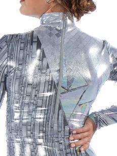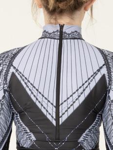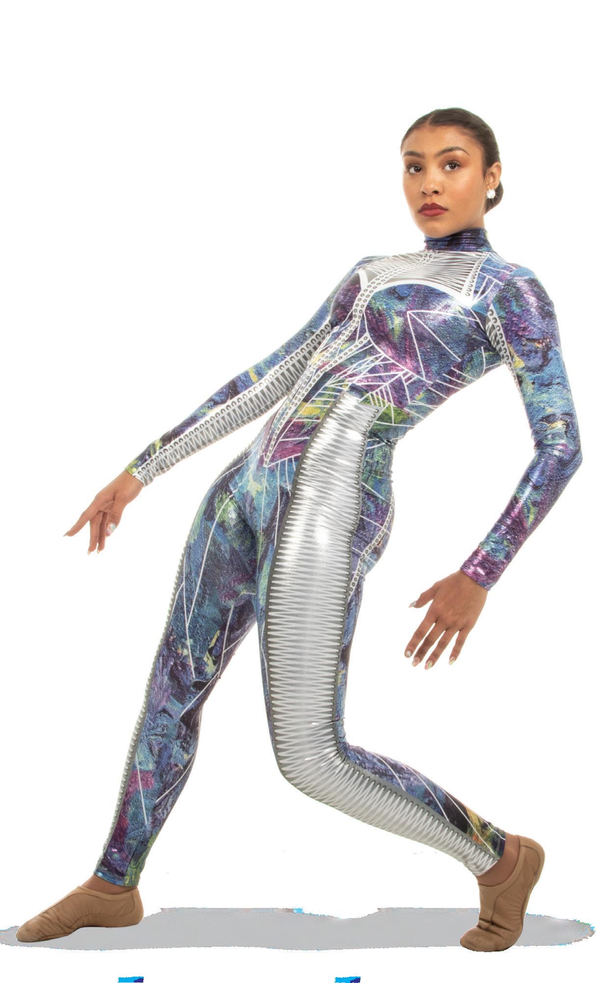 • Dye-sublimated long sleeve mock neck foil unitard.