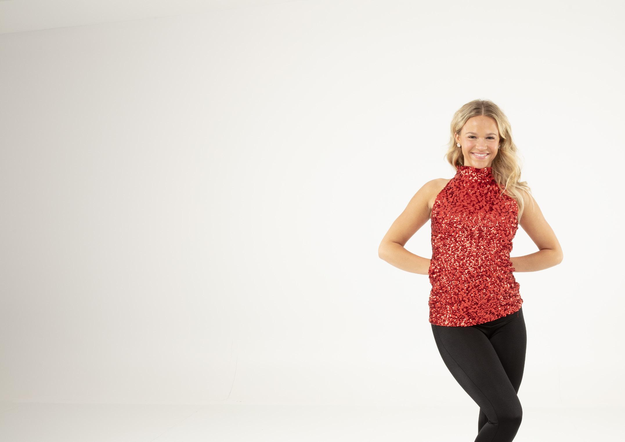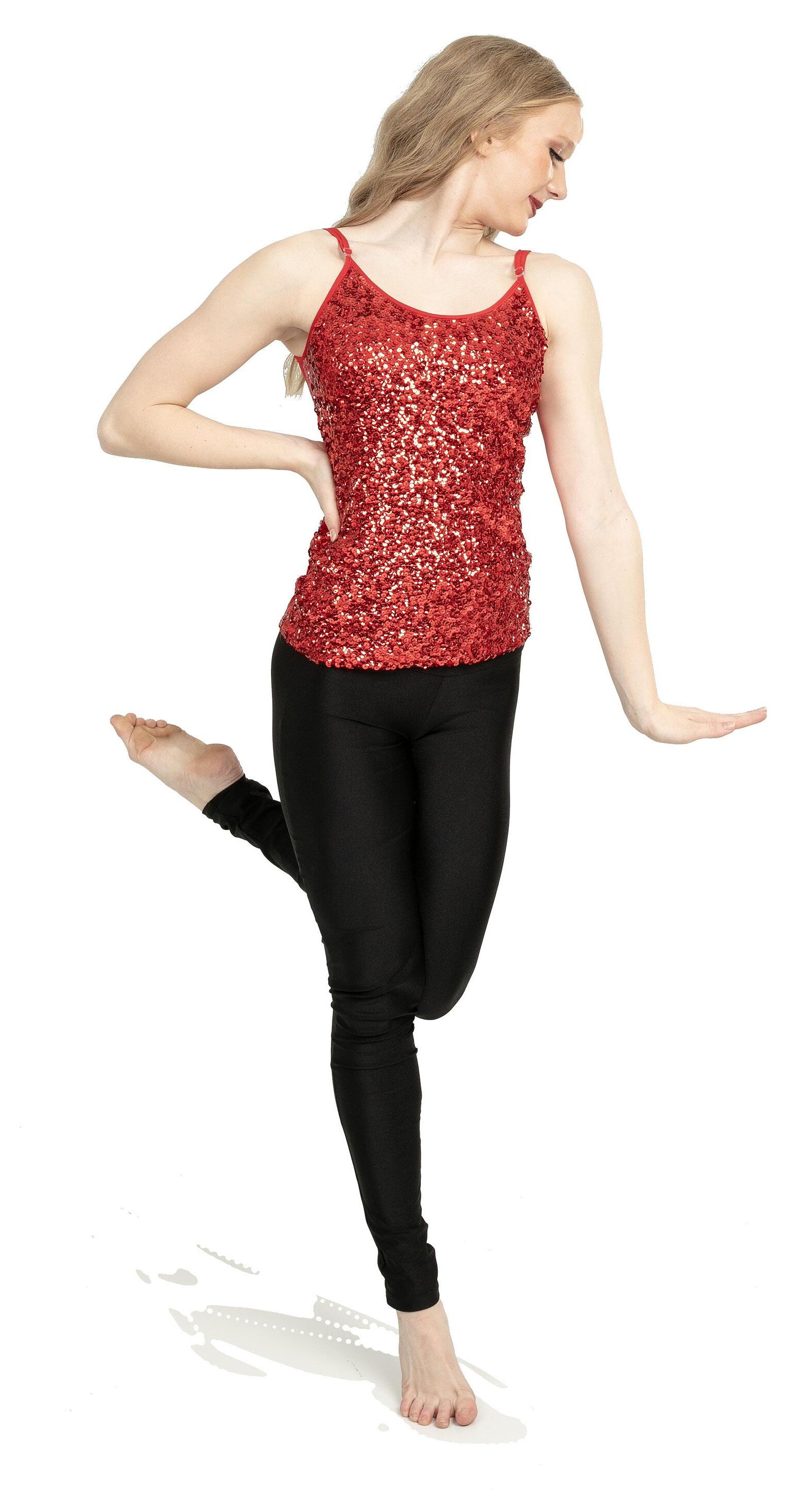A. SEQUIN CAMISOLE TANK Stretchy polyester blend material. Black, Silver, Red, Gold, Royal or Pink.