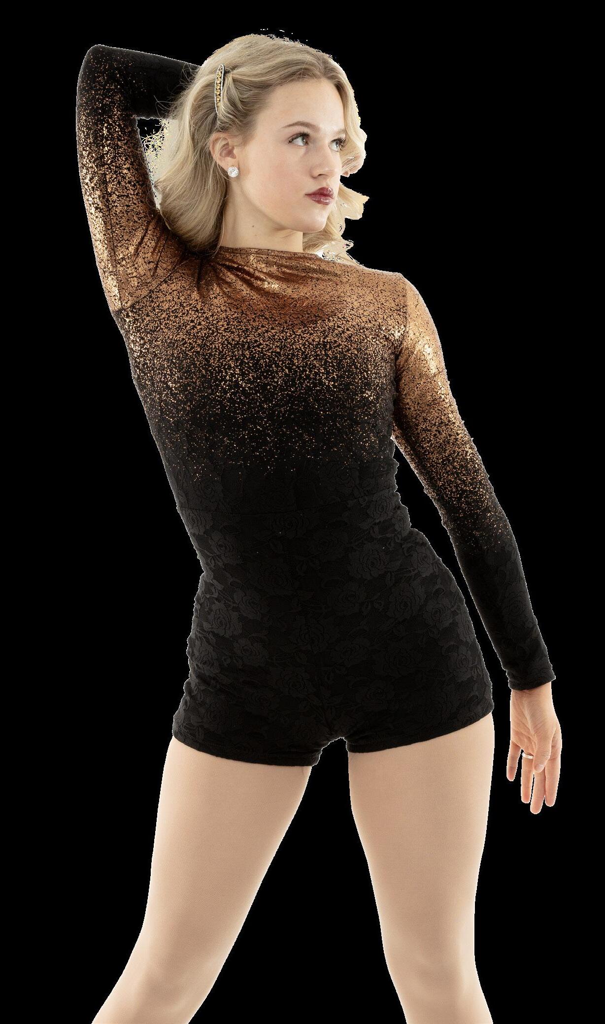 • Lined tricot foundation leotard for coverage.
