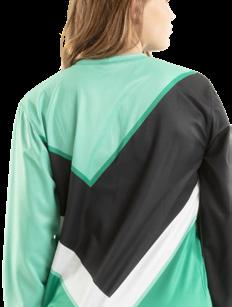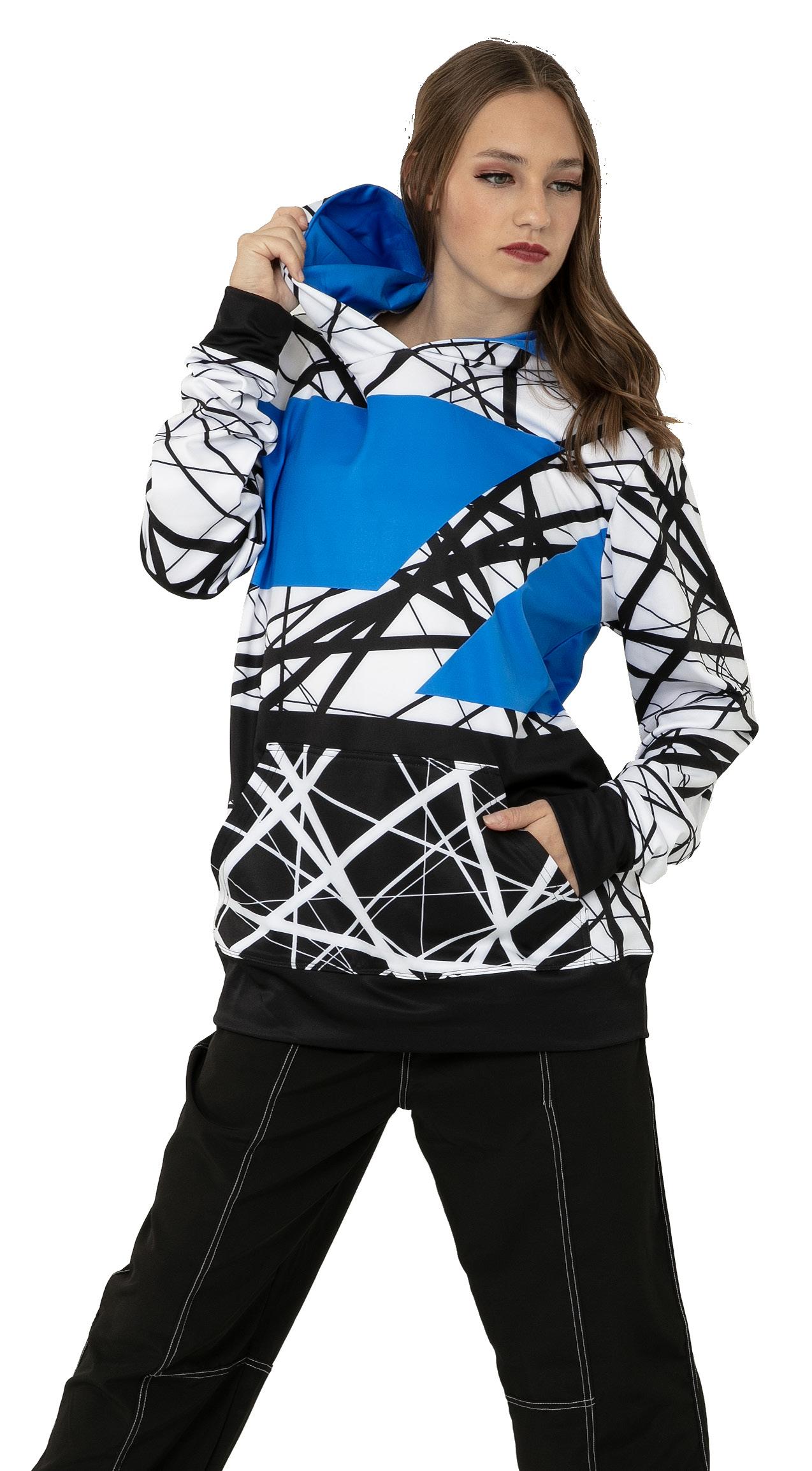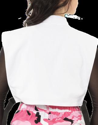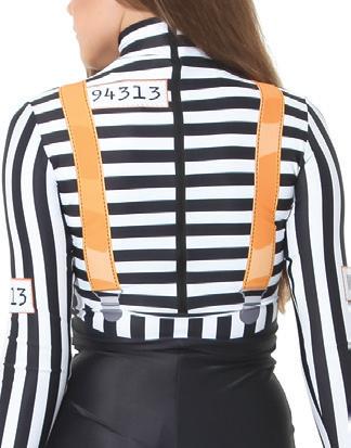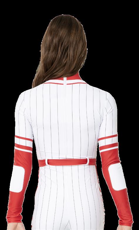 • White foil panels along the upper body, down the sleeves, and midriff area.