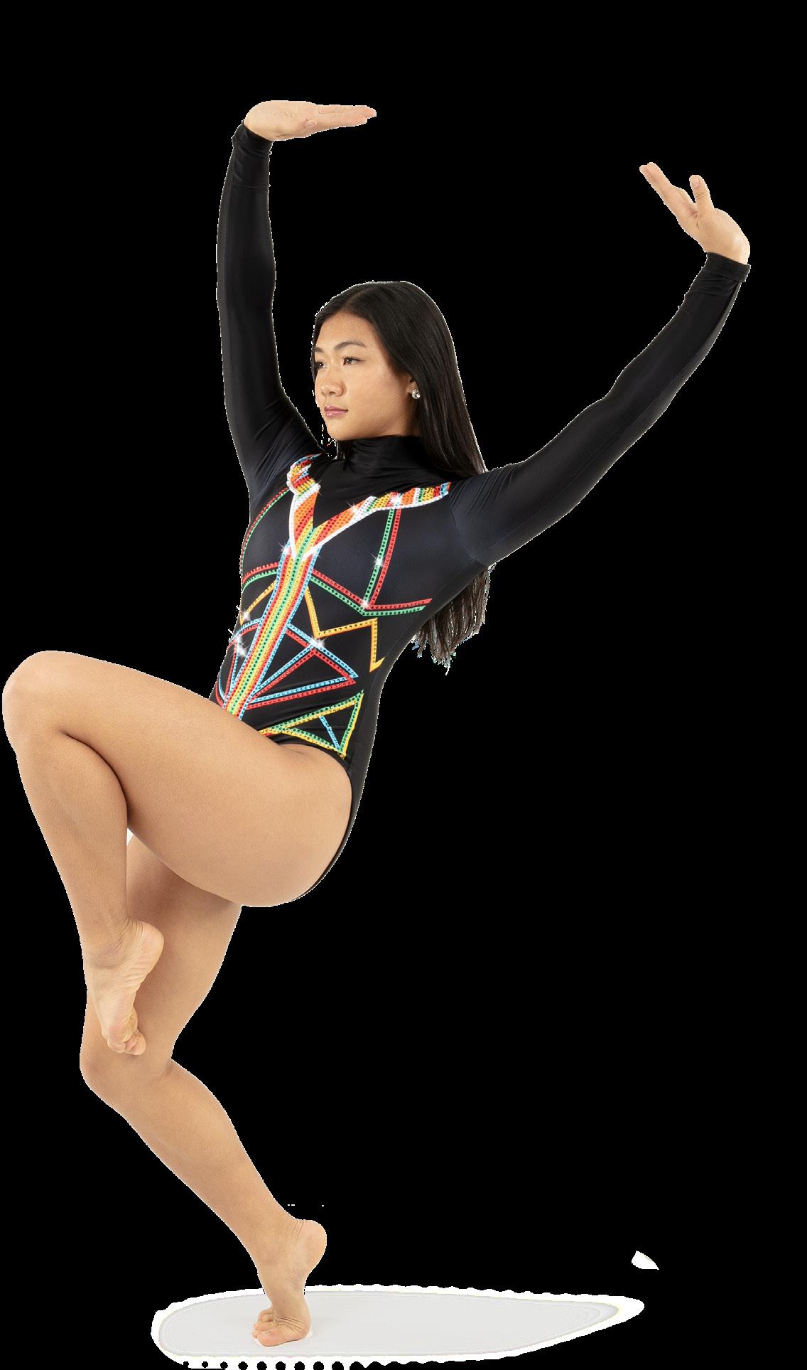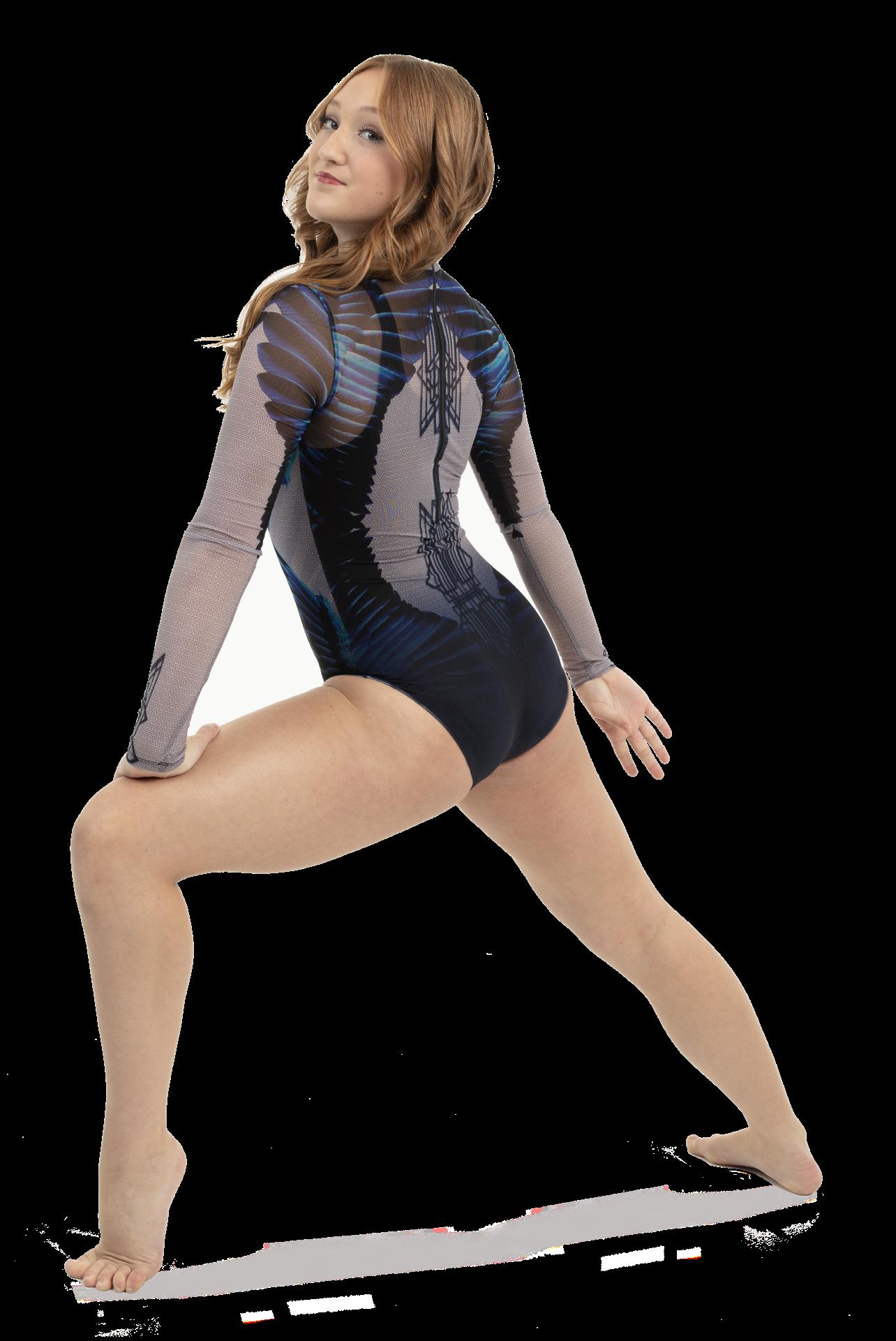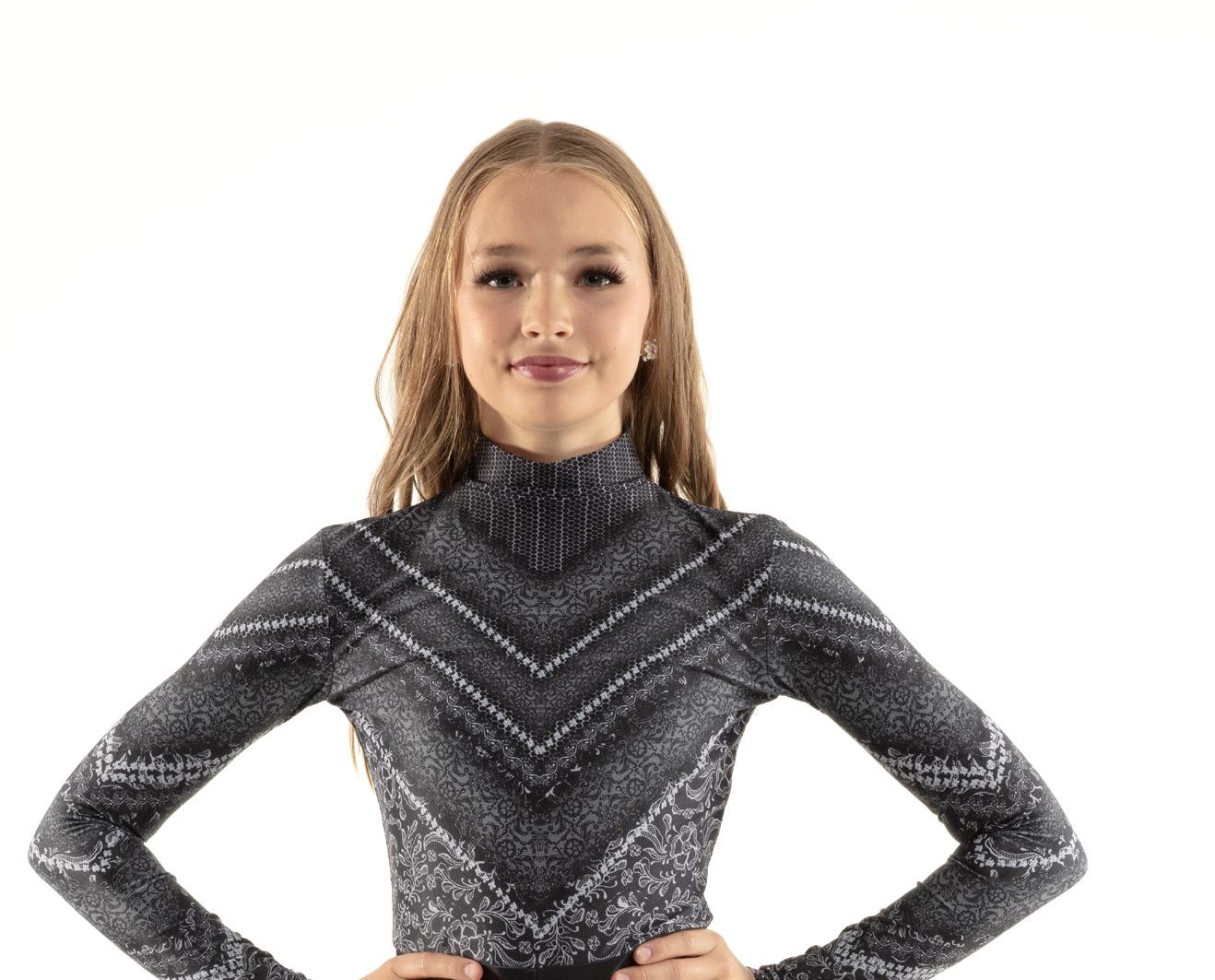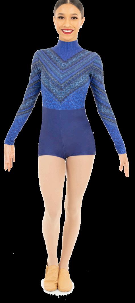 • Dye-sublimated long sleeve mock neck foil biketard.
