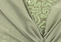 • Draped and gathered criss-cross mesh panels on the bodice.