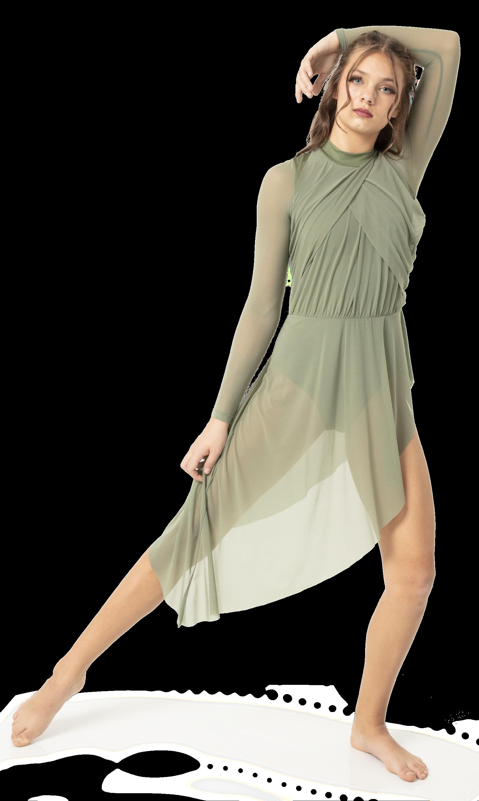 • Long mesh sleeve lyrical dress.