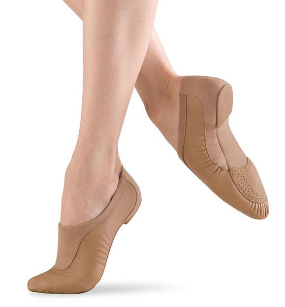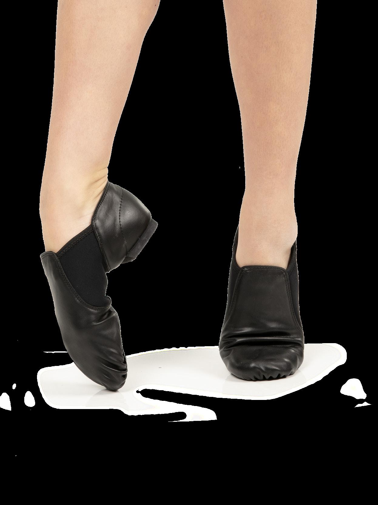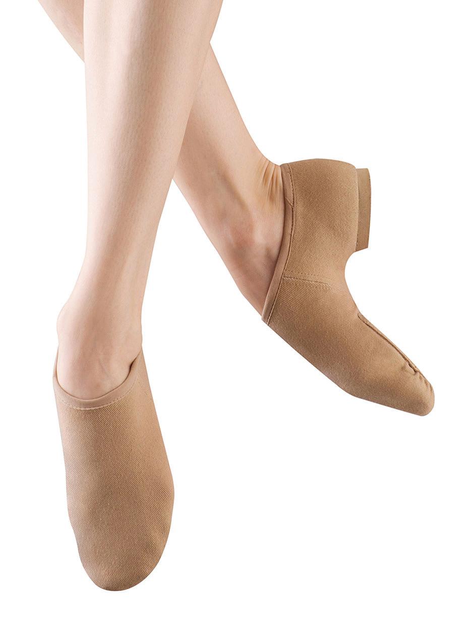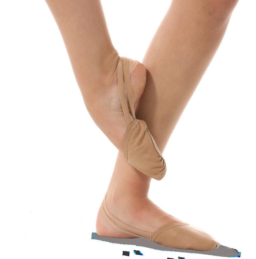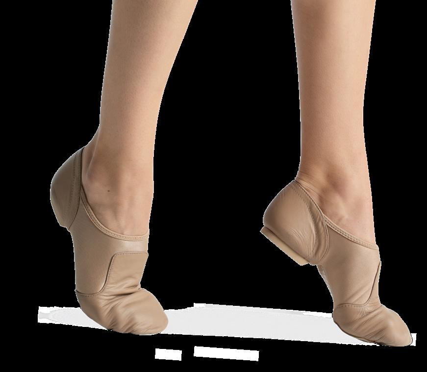 Split-sole ballet shoe with a 4-way stretch canvas upper, absorbent lining. Streamlined fitting to reflect the contours of the foot. Pre-sewn elastic straps. Colors: Black, Lt. Pink or Nude (adult only). Sizes: