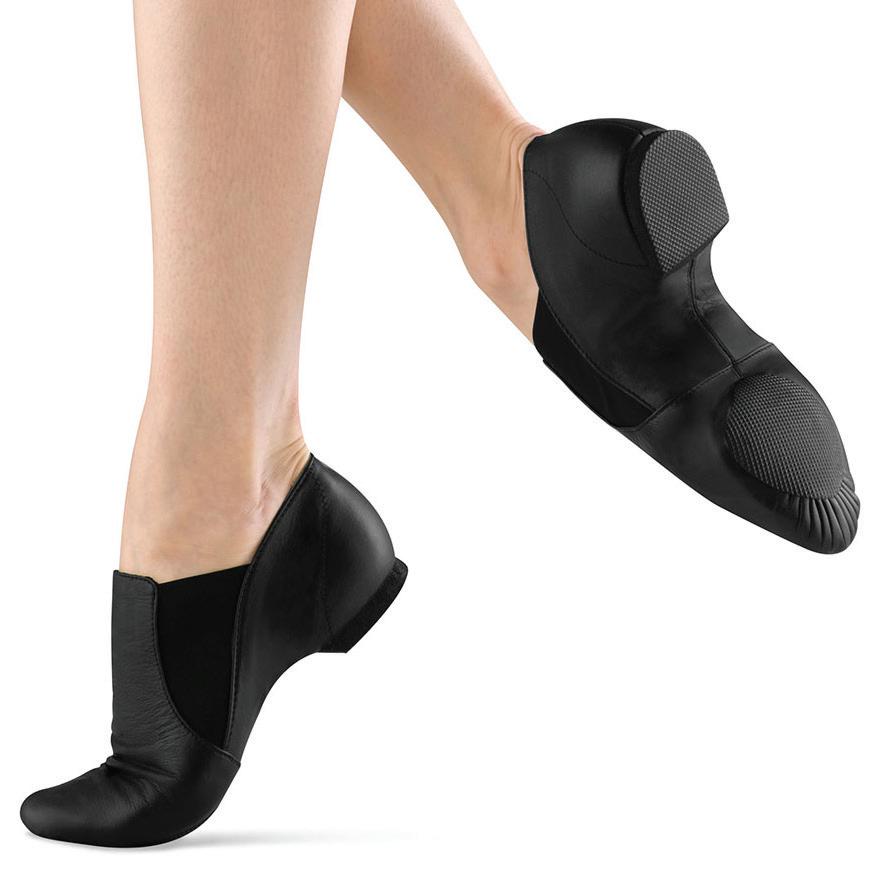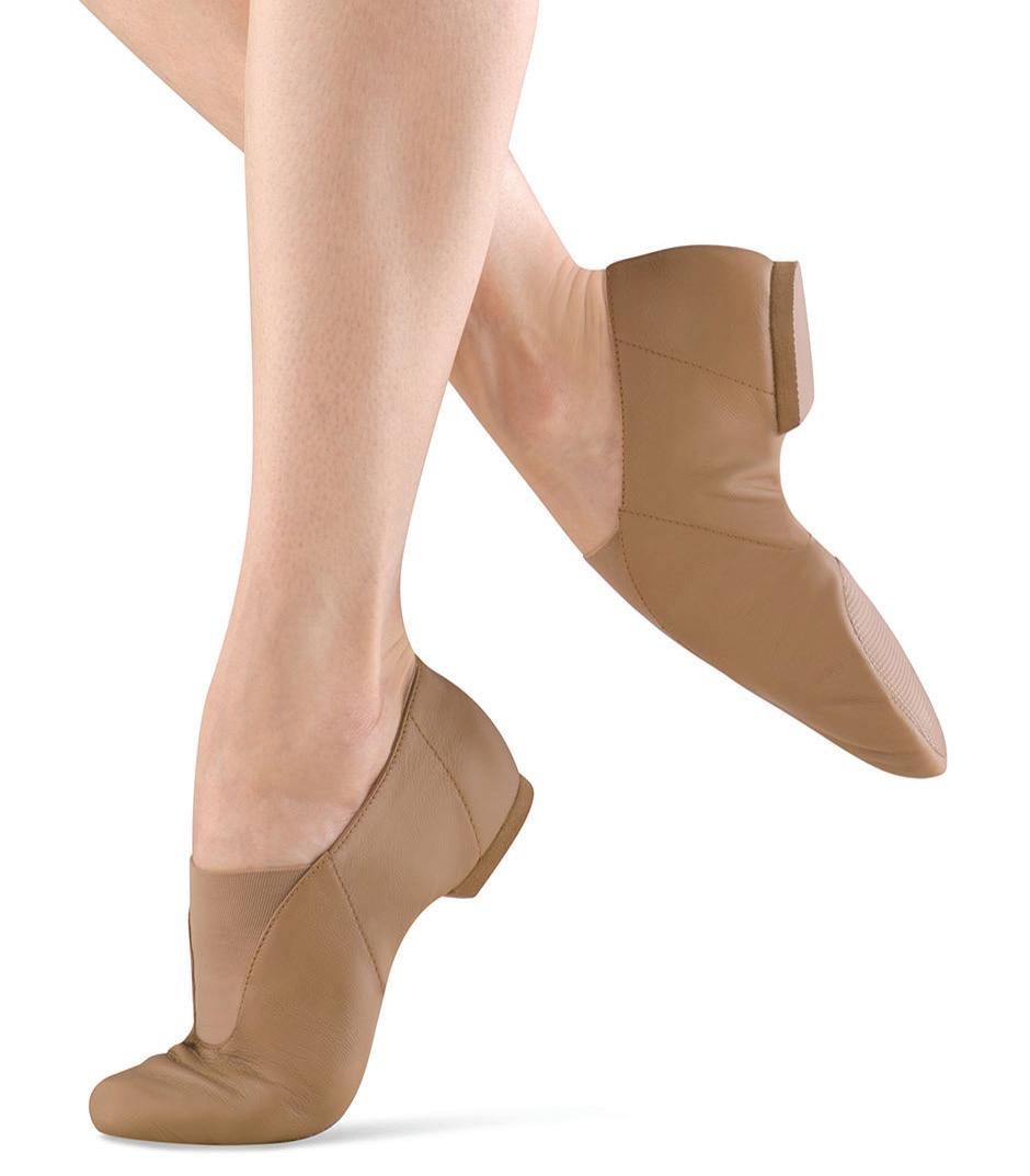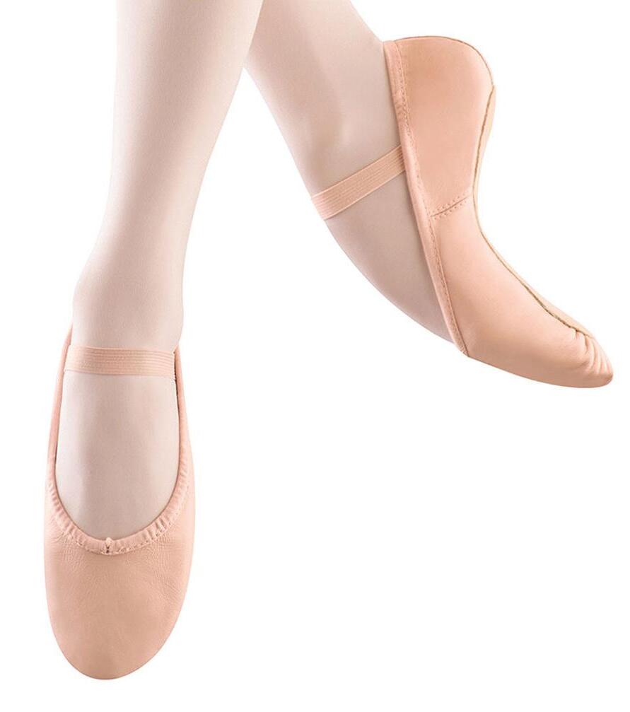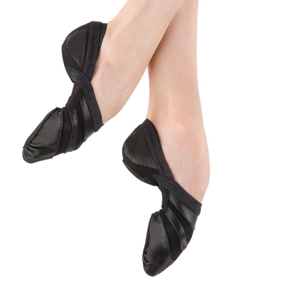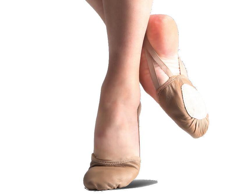 Split-sole ballet shoe with a 4-way stretch canvas upper, absorbent lining. Streamlined fitting to reflect the contours of the foot. Pre-sewn elastic straps. Colors: Black, Lt. Pink or Nude (adult only). Sizes: