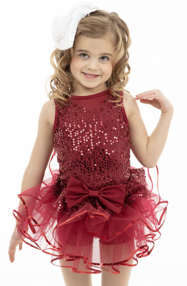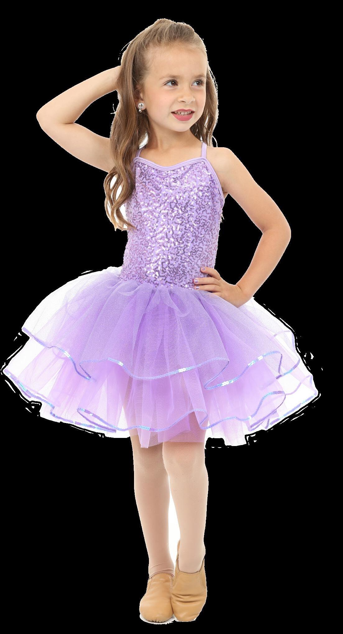 skirted leotard. Sweetheart neckline bodice with criss cross adjustable straps, multi-layered tulle skirt with sequin trim. Binding at neckline and armhole. Sizes: 4,6,8,10,12,14