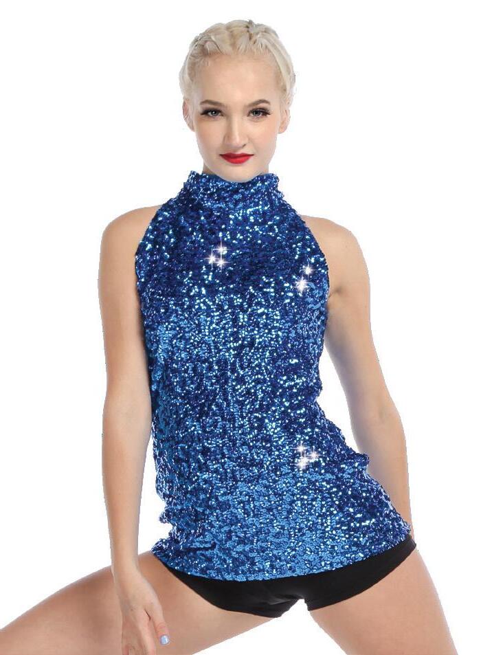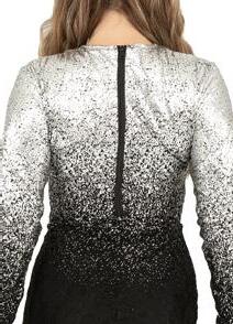 Alexandra. Elongated length top falls to mid-hip and features a full ombre sequin front and back, and mock neckband. A knit lining dress inside is enclosed around the armhole and neck for comfort. Center back zipper closure.
