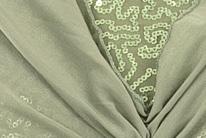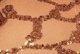 Alexandra. Sequin bra with a sweetheart illusion neckline, upper foiled sheen mesh panel, center racerback foiled sheen mesh panel, with an enclosed 1-inch elastic chest band. Front and back lined under sequin panels. Binding around the armhole and neckline. Polyester, Nylon.