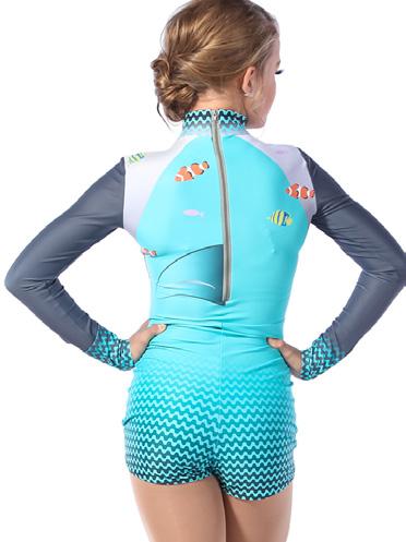 Alexandra. Spaghetti strap biketard with a zipper front overlay sequin camo bodice accented with contrasting binding. Cap sleeve and side camo panels on shorts. Zipper closure fully opens to pull on biketard. Add the 3-color tulle tutu skirt with an enclosed tricot waistband for the perfect look. Nylon, Spandex.