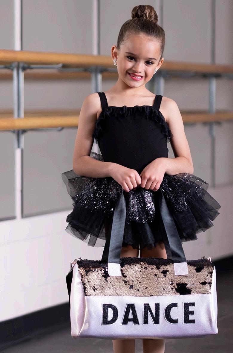 Every little dancer will love the unique, trendy color sequin and glitter Duffle Bags! 6”