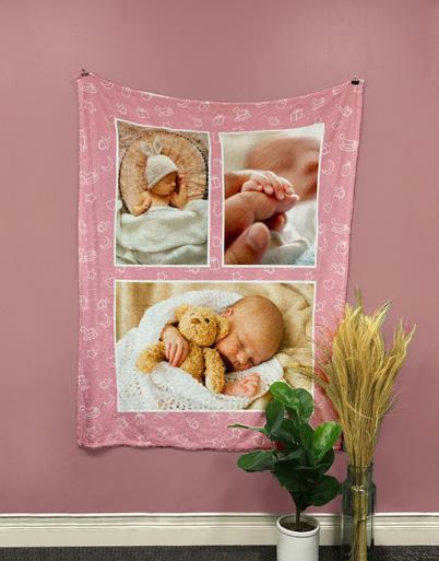 This custom blanket is made from 100% Polyester Fleece fabric. It starts as a white blanket and through dye sublimation, the ink is pressed deep into the fibers to make the perfect custom and cozy blanket! It will never wash out and the color will always stay vibrant. 50 inch x 60 inch.