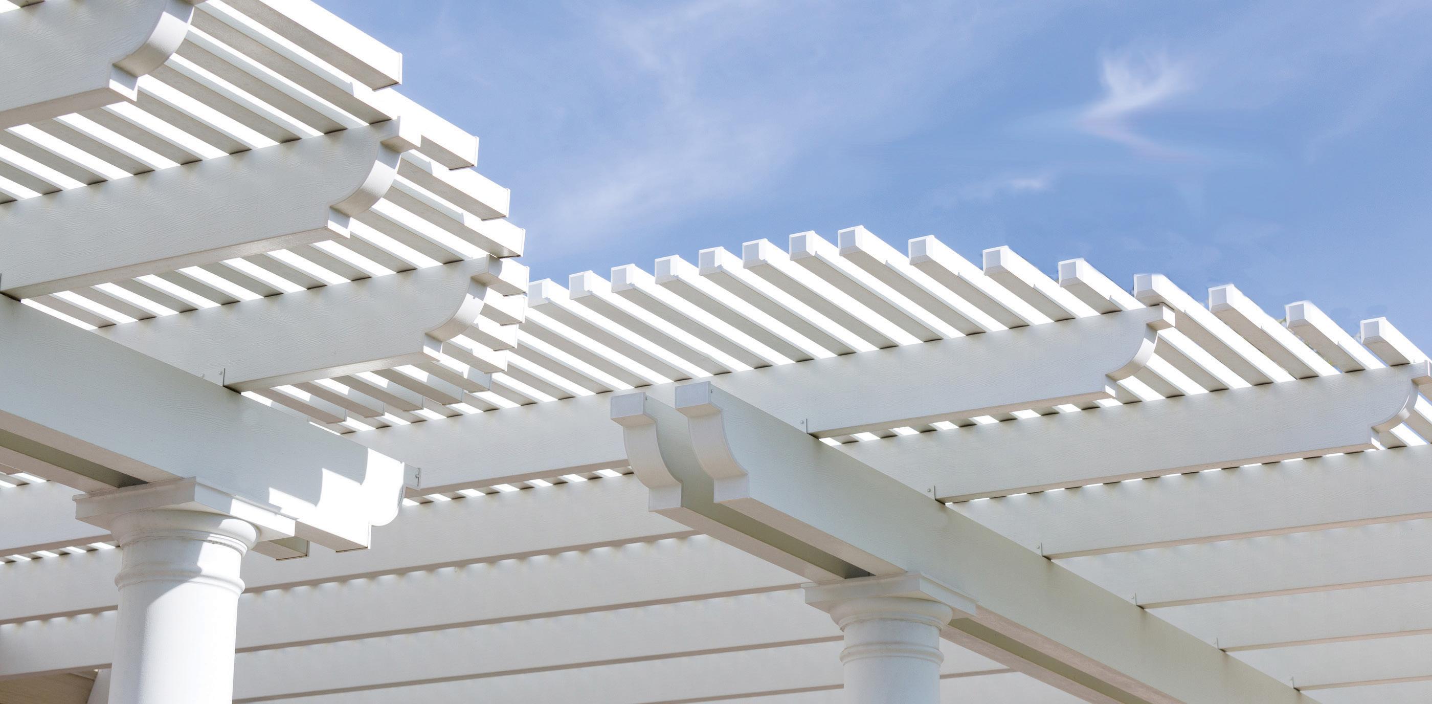 TheUltimateChoiceinDurable,BeautifulPatioCovers. 877.846.9576 • DuraGrain Vinyl Beautiful texture of grain woods • Route-and-lock Construction No unsightly screws or brackets to rust or corrode • Vinyl Smart USA Products Never rot, warp, crack, peel, attract termites, need painting, staining or sanding www.vinylsmart.com License #951847 Vinyl Smart USA Products will never fade or discolor — Lifetime Transferable Warranty