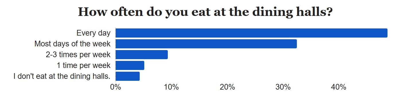 To better understand the level to which students were affected by the closure, the survey asked respondents to share how often they usually eat at the dining halls and which of the two they frequented before Sherman’s closure. 49% of the respondents eat at the dining halls every day and 32% eat there most days of the week. When it came to respondents’ dining hall preferences, 34% of students reported eating at Sherman more often, while 29% ate more often at Usdan. 21% of respondents said that they only ate at Sherman. Consequently, the data suggests that these students were significantly affected by Sherman’s closure. Respondents also reported experiencing challenges related to a range of dietary needs. Some of the most common ones include kosher and halal diets, allergies, lactose intolerance, celiac disease and vegetarianism. The diverse answers reflect students’ various needs on campus, which the dining halls are expected to meet. As there is one main functional dining hall at the moment, it is critical that the University accommodates all students' dietary needs. “It has made it almost impossible to eat at the dining halls with my dietary restrictions and Sherman being closed,” a student reported. Responses revealed mixed opinions about students’ experiences in Usdan since the beginning of
