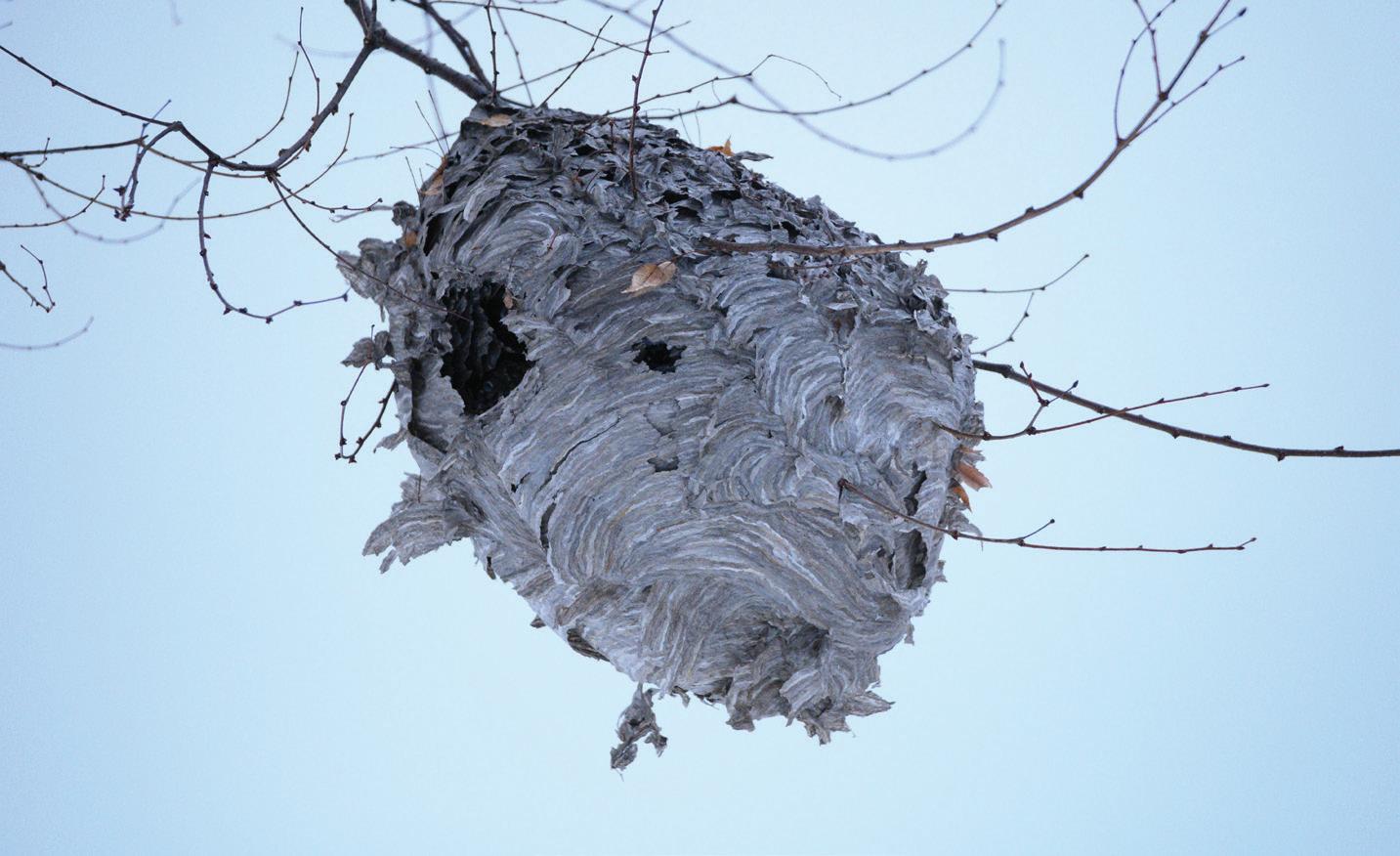 WASPS’ NEST: A gray wasps’ nest looms ominously against a blue sky. JAMES LI/The Justice.