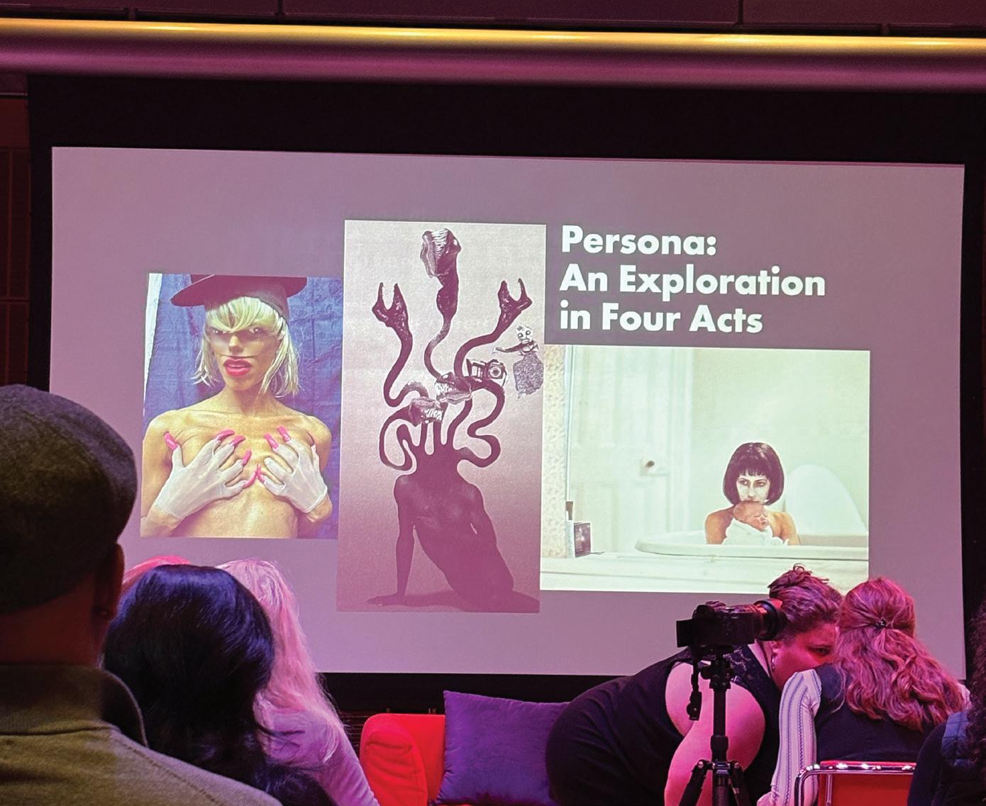 The first artist to speak was Narcissister, a Brooklynbased performance artist, whose character “Narcissister” directly reflects her artist persona. Narcissister blends the art of photography with her repurposing of wig display forms in order to elicit art with commentary on feminism,