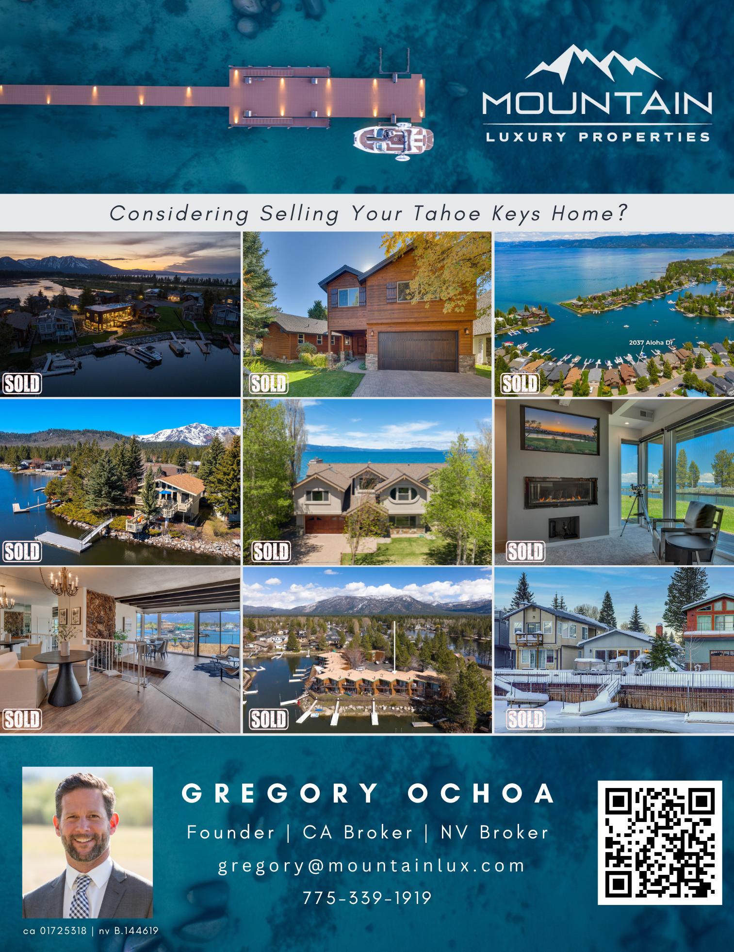 BRE #00838770 You Know Me. And I Know the Tahoe Keys. 530.545.0888 | 530-541-2200 adele@adelelucas.com HERE ARE YOUR FEBRUARY 2023 TAHOE KEYS STATISTICS: SINGLE FAMILY FEBRUARY 2023 SOLDS: 2 AVG. SOLD PRICE: $1,201,650 ($616.56/sq. ft. avg.) SOLD DOM: 90 % OF ASKING PRICE: 95.44 ACTIVE: 12 AVG. LIST PRICE: $2,490,333 ($851.14/sq. ft. avg.) AVG.DOM: 164 TOWNHOUSES FEBRUARY 2023 SOLDS: 0 AVG. SOLD PRICE: SOLD DOM: % OF ASKING PRICE: ACTIVE: 7 AVG. LIST PRICE: $806,571 ($608.03/sq. ft. avg.) AVG.DOM: 107 IT’S A GREAT TIME TO LIST YOUR PROPERTY! — FEATURED LISTINGS — RARE LAKEFRONT OPPORTUNITY 315 Beach Drive | $9,680,000 Panoramic views from this European Villa are majestic! Its 100 feet of prime sandy beach, boat slip and close proximity to tennis courts, pools and pickle ball are just some of this lake front’s amenities. WATERFRONT LODGE WITH INDOOR POOL 296 Beach Drive | $6,300,000 An exquisite 7 bedroom “Smart Home” in Tahoe Keys with large private boat dock is located on the wide waterway of Spinnaker, and just steps away from parks, private beach and tennis courts. This contemporary newer home will be tomorrow’s heirloom property.