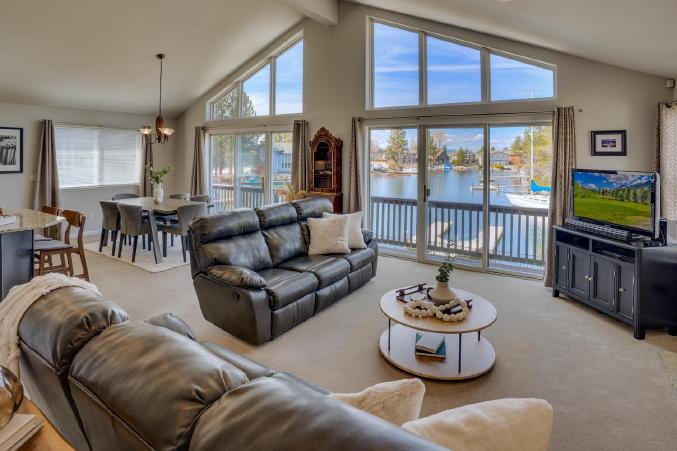 Priceless setting in Tahoe Keys with views of Mt. Tallac, Heavenly Valley and the Wildlife Sanctuary Meadow. This updated 5 bedroom waterfront lodge has a large boat dock and parklike yard with hot tub and room for popular outdoor games. The home has a bonus third level providing that extra space for guests and entertaining. It comes furnished and ready to enjoy.