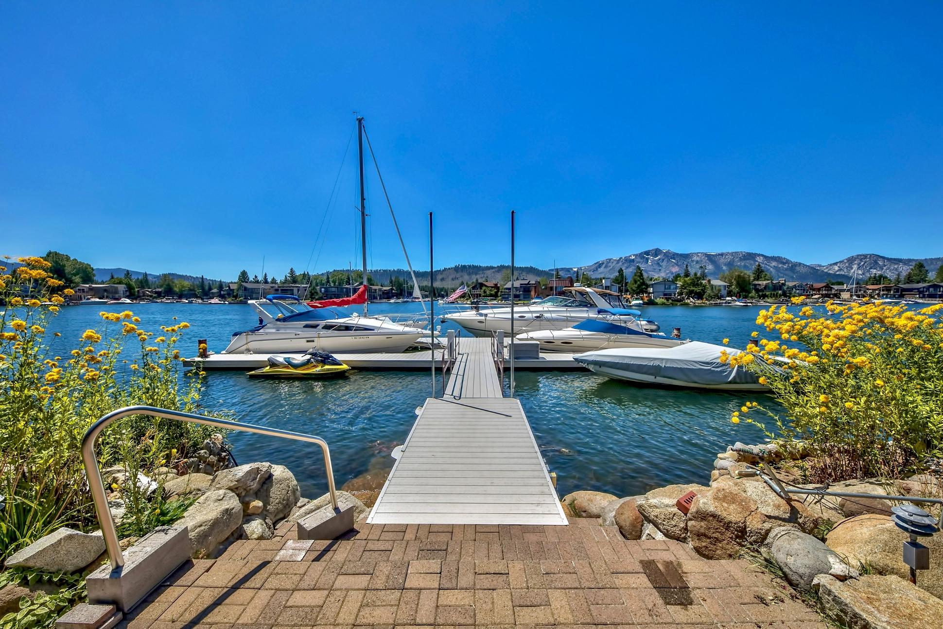 An exquisite 7 bedroom “Smart Home” in Tahoe Keys with large private boat dock is located on the wide waterway of Spinnaker, and just steps away from parks, private beach and tennis courts. This contemporary newer home will be tomorrow’s heirloom property.