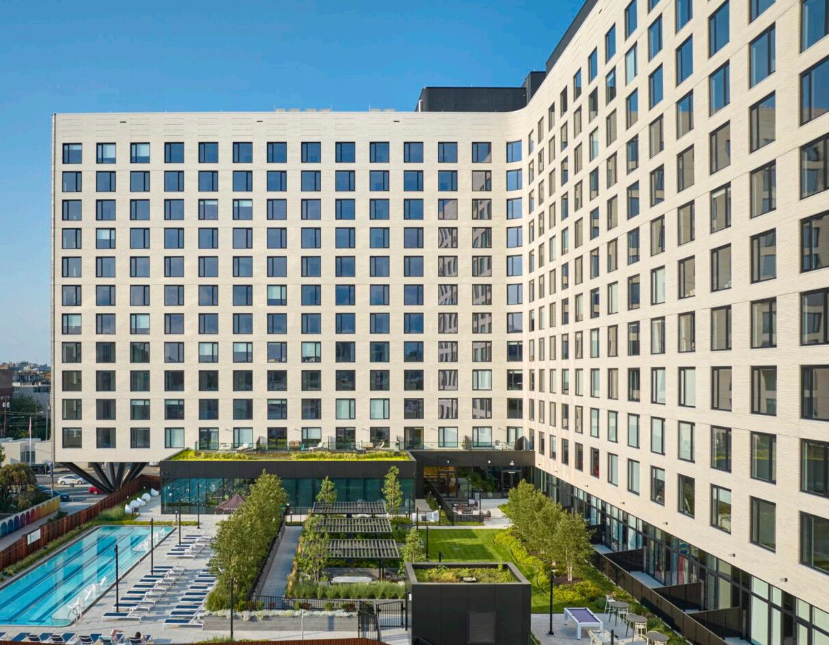 The Noble, by Handel Architects, is a 13-story pedestrian centric building that includes 360 apartments over structured parking and approximately 25,000 sq. ft. of retail. The construction features hand-laid brick with a curving façade paired with a dramatic cornice to create the building’s signature on the skyline