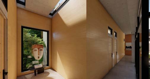 The building is designed as an atirum with warped perspectives of scale and structure in order to further assist in the ability to project aspects of national park features.
