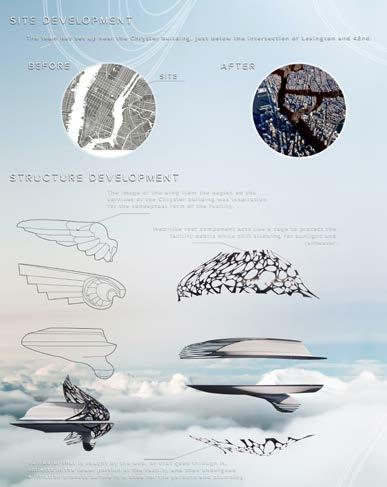 A museum overlooking Klyde Warren Park in Dalls, Texas with intent to give visitors a perspective on various national parks without having to travel to them and to reduce the number of poeple in our national parks in effort to preserve them. This open air structure is designed to give visitors a simulated feel and experience of a national park through virtual and augmented reality exhibits.