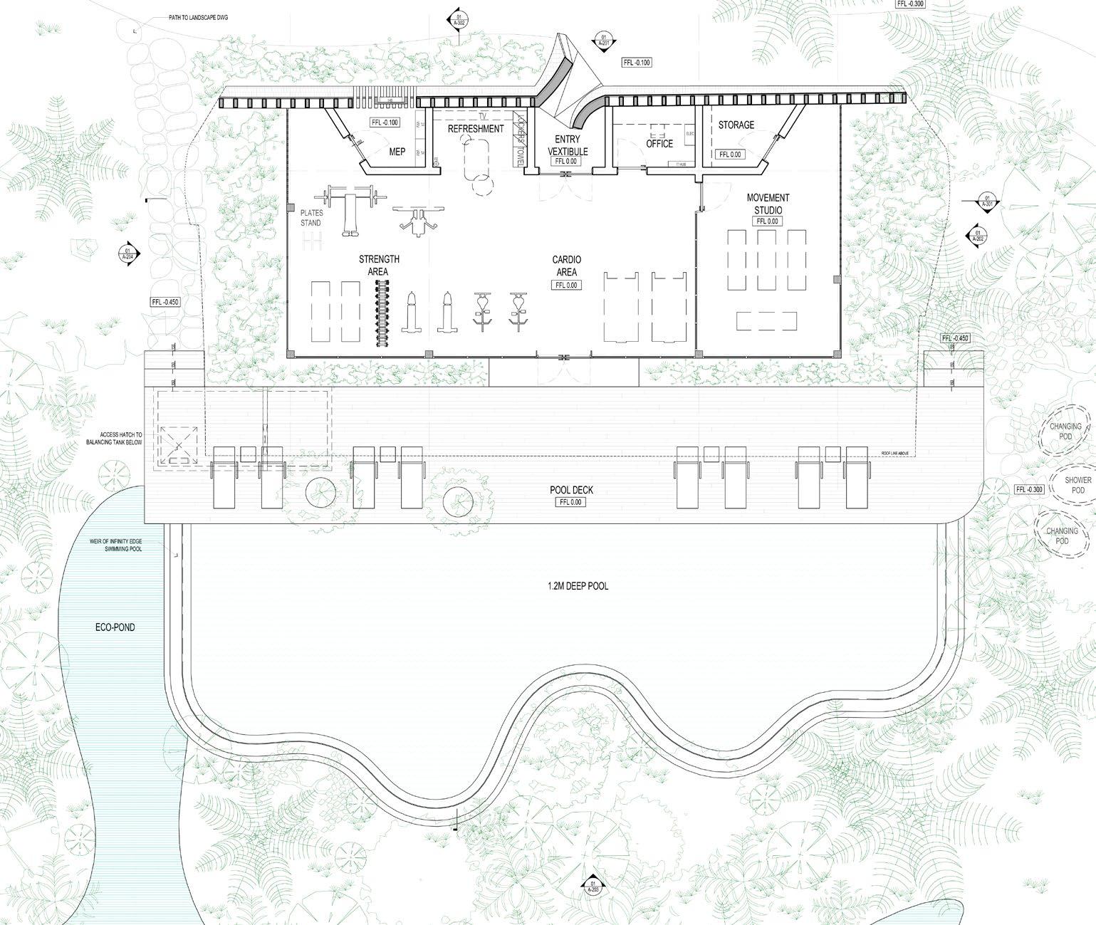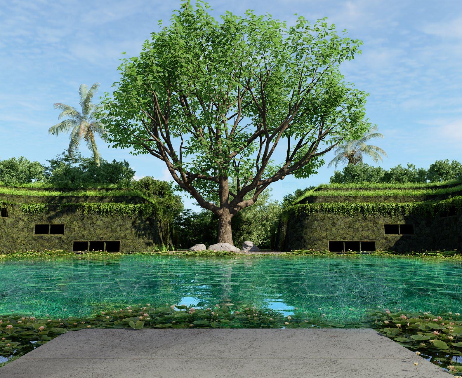 The Wellness Village is an integral part of the hospitality masterplan, envisioned as a sanctuary for guests to restore both body and soul through a deep connection with nature. Conceived as a nature-immersive walking experience, the masterplan guides guests along meandering pathways dotted with pockets of retreat and quiet lookout points. Each step through the village encourages mindful engagement with the landscape, inviting moments of reflection and calm. As the heart of the complex lies a crystal-clear freshwater pond, its waters naturally filtered by layers of aquatic plants that purify and sustain the ecosystem. This central feature reflects the essence of the village’s design philosophy - a space for cleansing not only the physical body, but also the spirit, through the healing presence of water, plants, and quietude.