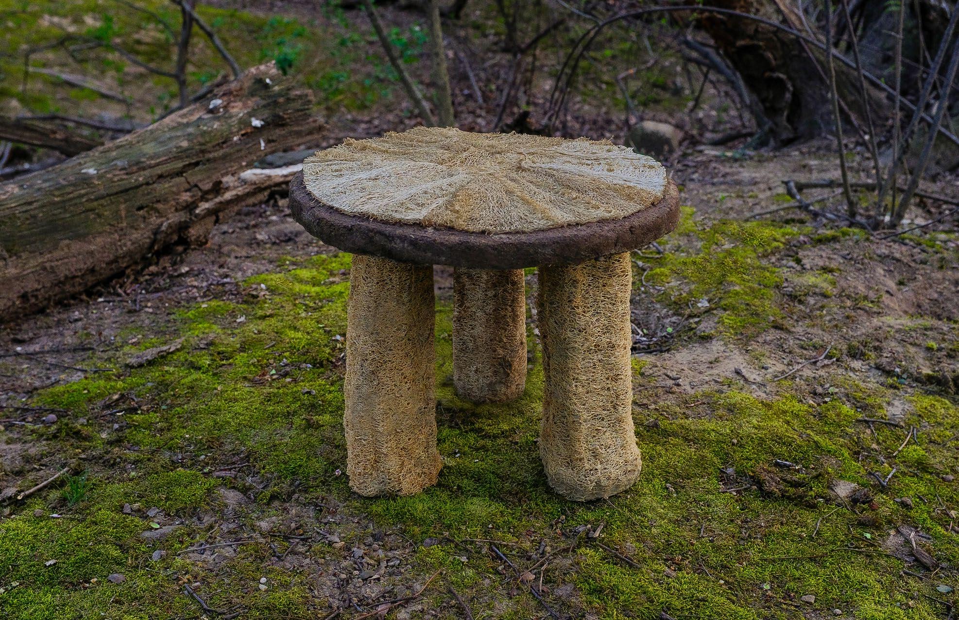 The Luffa Stoolita challenges the possibilities of applying the fruit to load-bearing purposes at the human scale, specifically as furniture, to test its strength and constructibility. In conceiving the concept for the furniture piece, the design considers all components of the fruit, utilizing it as formwork, fibers for construction, and cushioning for comfort and support.