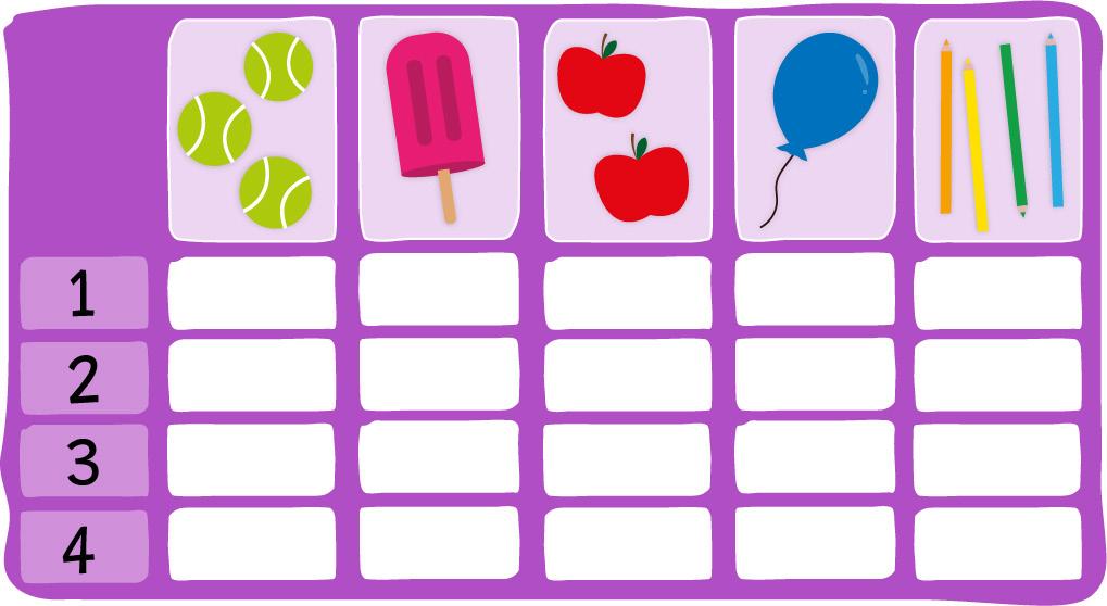 MARCÁ CON UNA X EL CUADRITO QUE CORRESPONDA SEGÚN LA CANTIDAD QUE HAY DE CADA OBJETO