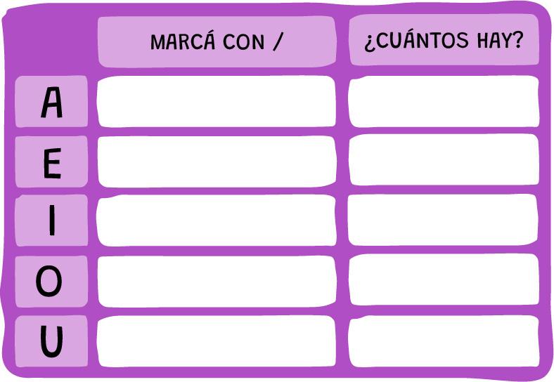 CONTÁ CUANTAS VOCALES HAY DE CADA CLASE COLOCANDO / EN LA TABLA