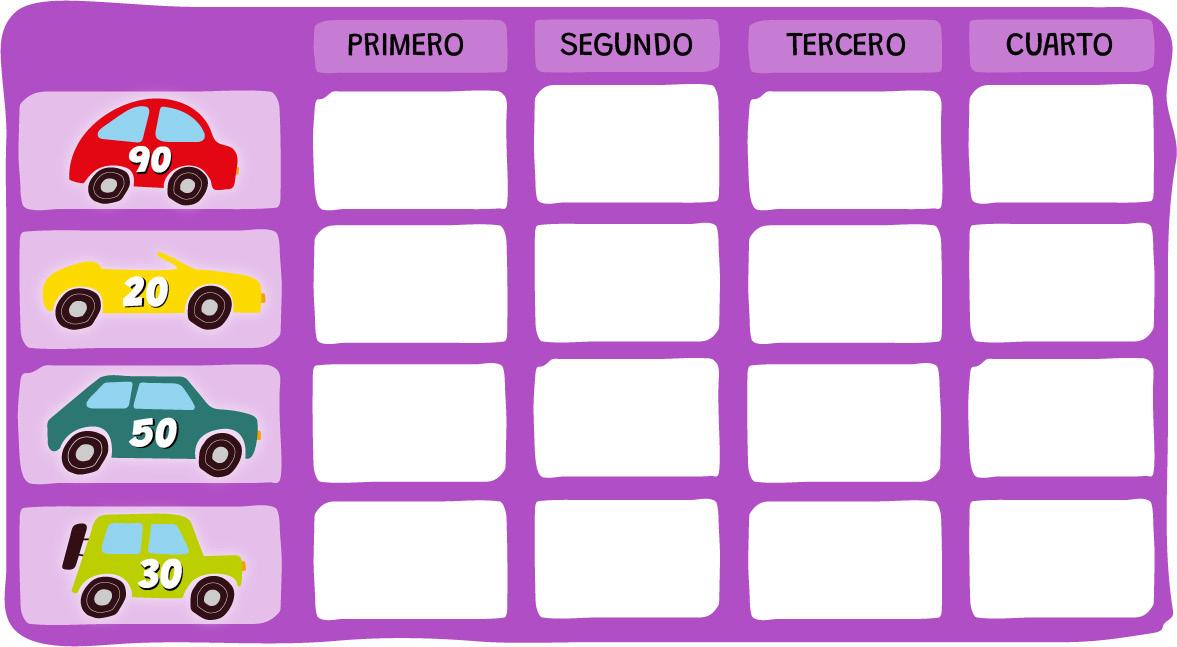 ESCRIBÍ LOS NÚMEROS DE LOS AUTOS QUE NO LLEGARON EN PRIMER LUGAR