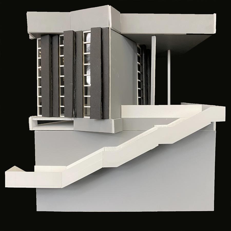 The building’s main formal strategy are the rotations in elevation that create unique terrace spaces, which are utilized as usable spaces. Rotating floors in architecture can create unique and dynamic terrace spaces. As you ascend the building, each floor can be rotated at a different angle, creating a variety of outdoor spaces for occupants to enjoy. This design element not only provides an aesthetic appeal but also offers functional benefits. The rotation of floors can optimize sunlight exposure and views, while also providing wind protection and privacy. Additionally, these rotating terraces can serve as green spaces or gardens, enhancing the sustainability and livability of the building. Overall, rotating floors offer a creative and practical solution for architects seeking to create distinctive and functional outdoor spaces in their designs.