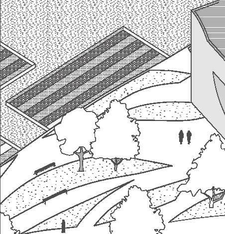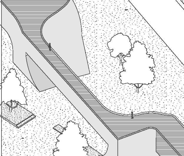 The project focuses on the different zones of programs for recreation in this neighborhood in Ottawa, Illinois. Despite having the divisions, these programs are still connected through the paths and bridge across the site.